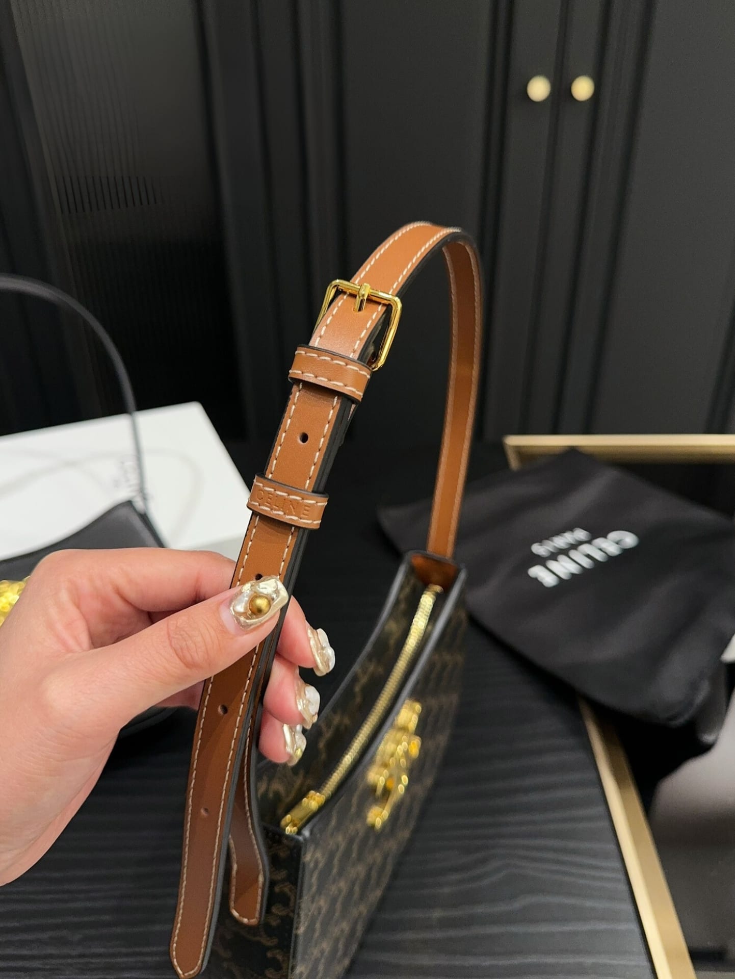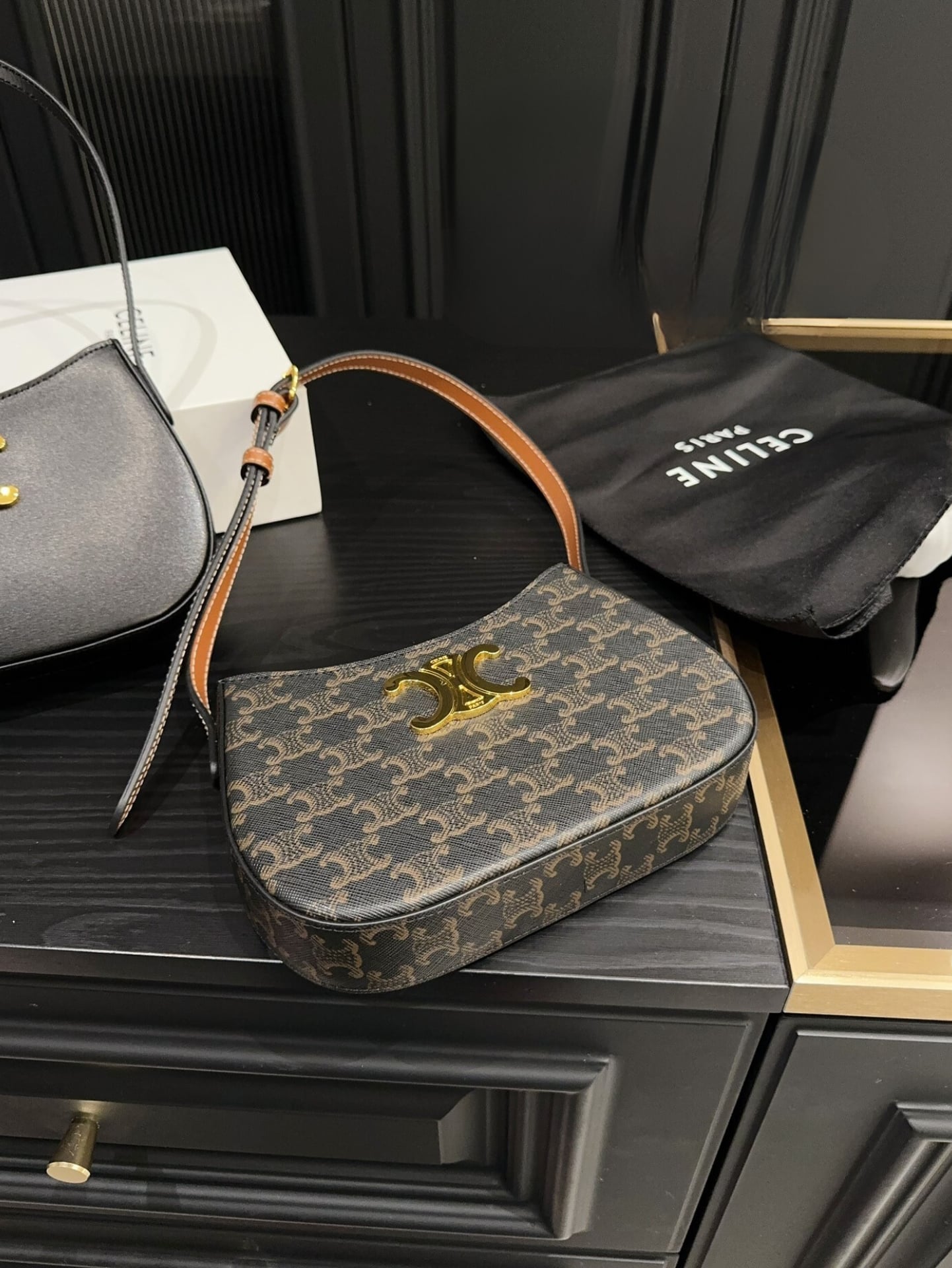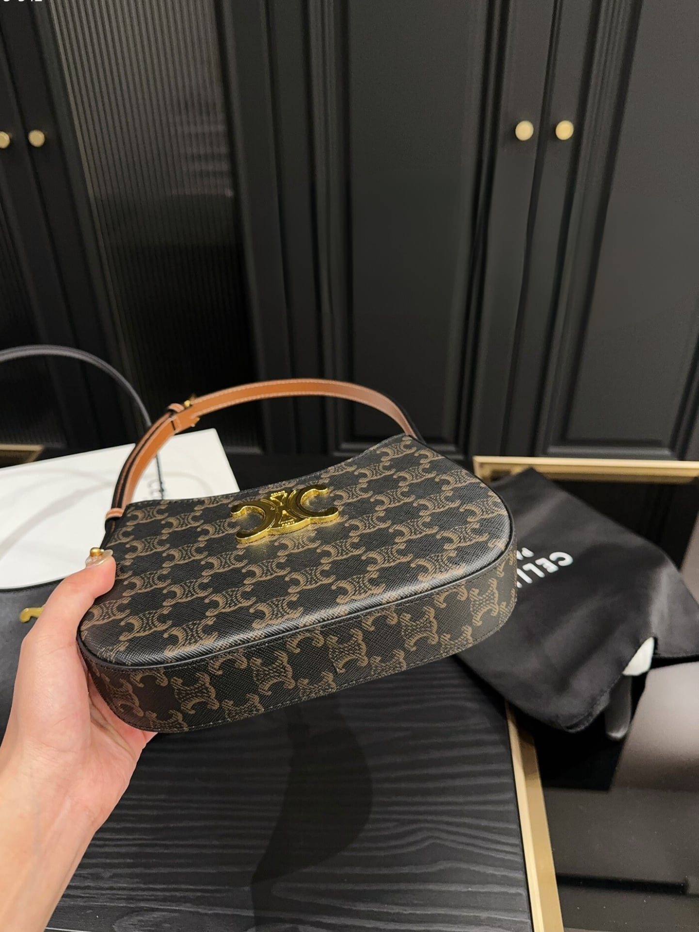 Celine Medium Tilly Bag In Triomphe Canvas And Tan 21Cm 115702Cuz 04Lu