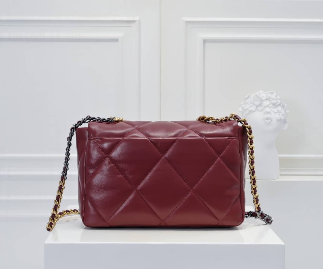 Chanel 19 Flap Bag Shiny Crumpled Burgundy 22Cm