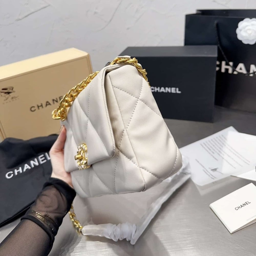 Chanel 19 Flap Bag Shiny Gold And Silver Tone White 26Cm As1161 B04852 10601