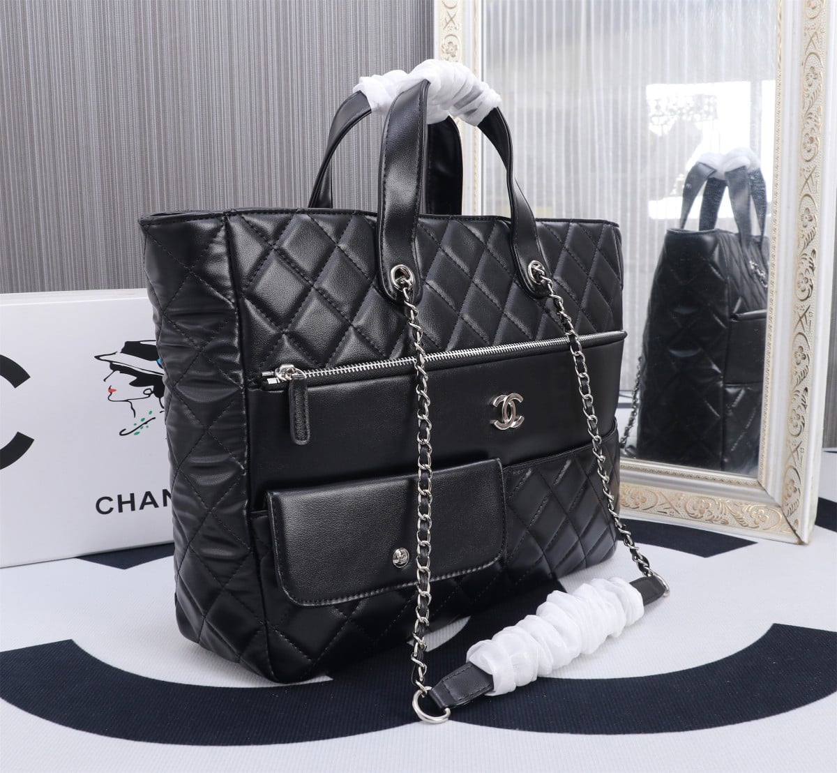 Chanel 20C Ultra Pocket Tote Bag Quilted Black Leather 37Cm As1300 90123316