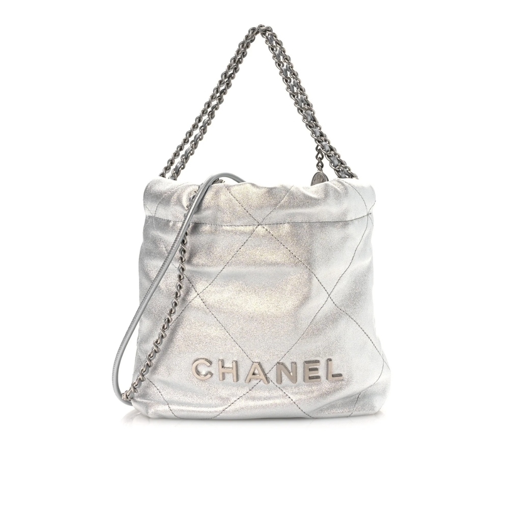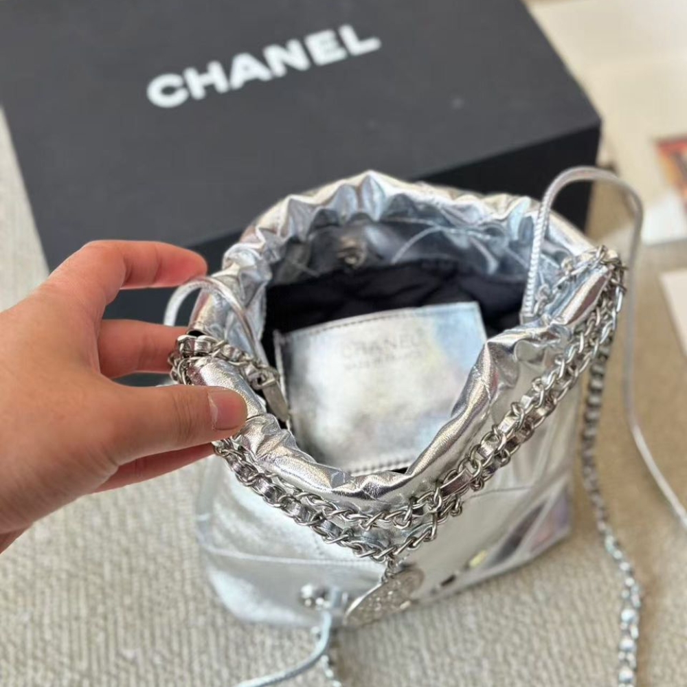 Replica 1:1 – Chanel 22 Mini Handbag Shiny And Gold Tone Metal Silver 20cm