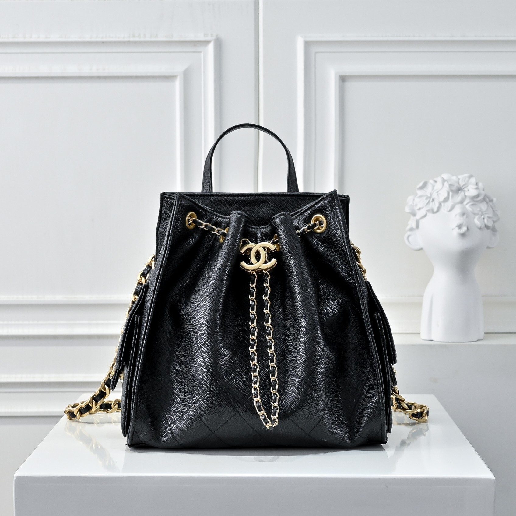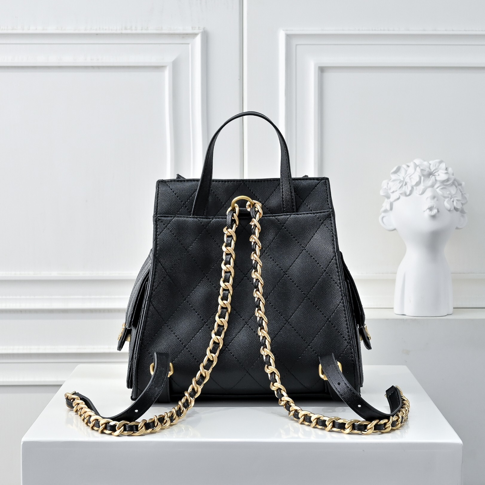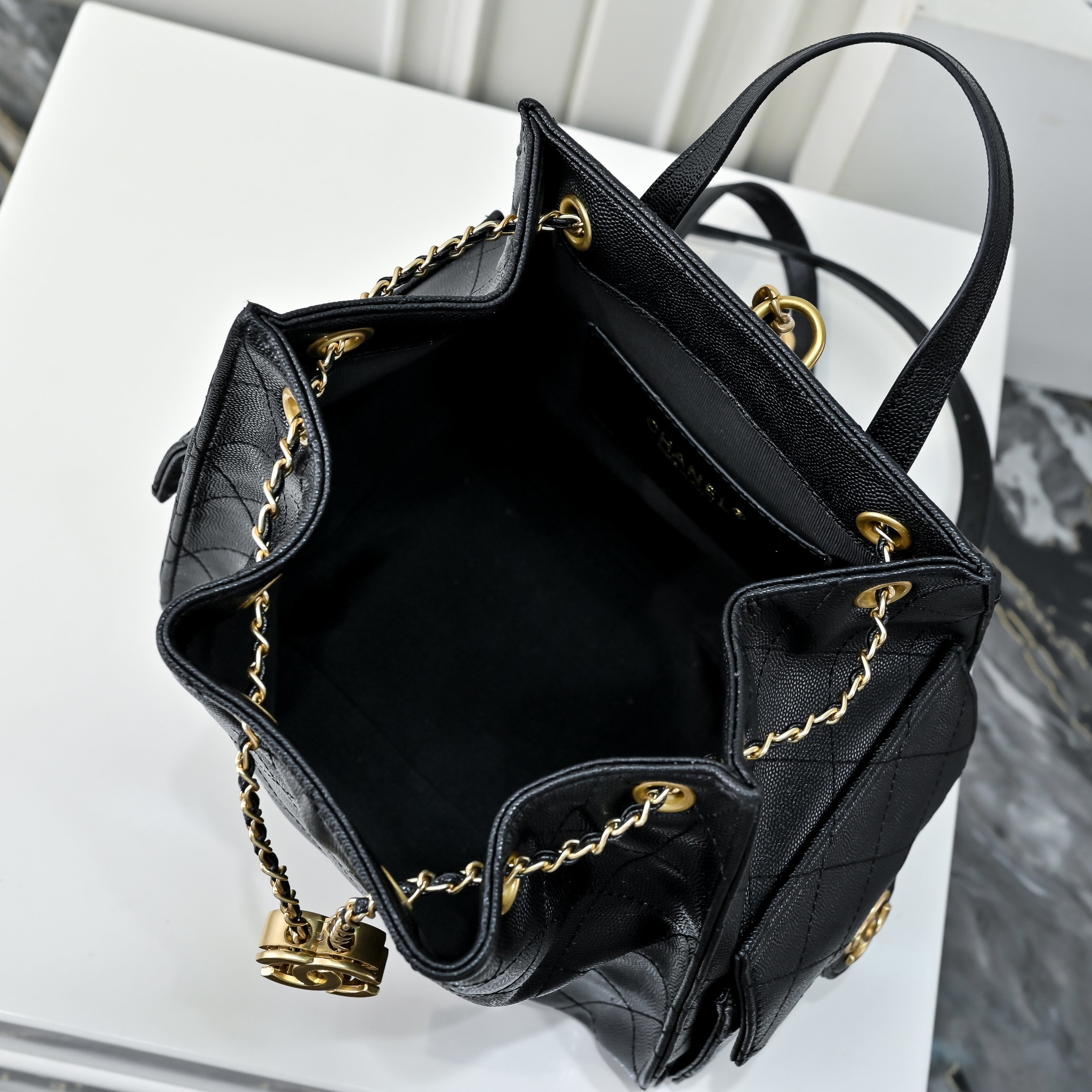 Chanel 25 Medium Size Backpack Grain Effect And Gold Metal Black 23Cm As5600 B20304 94305