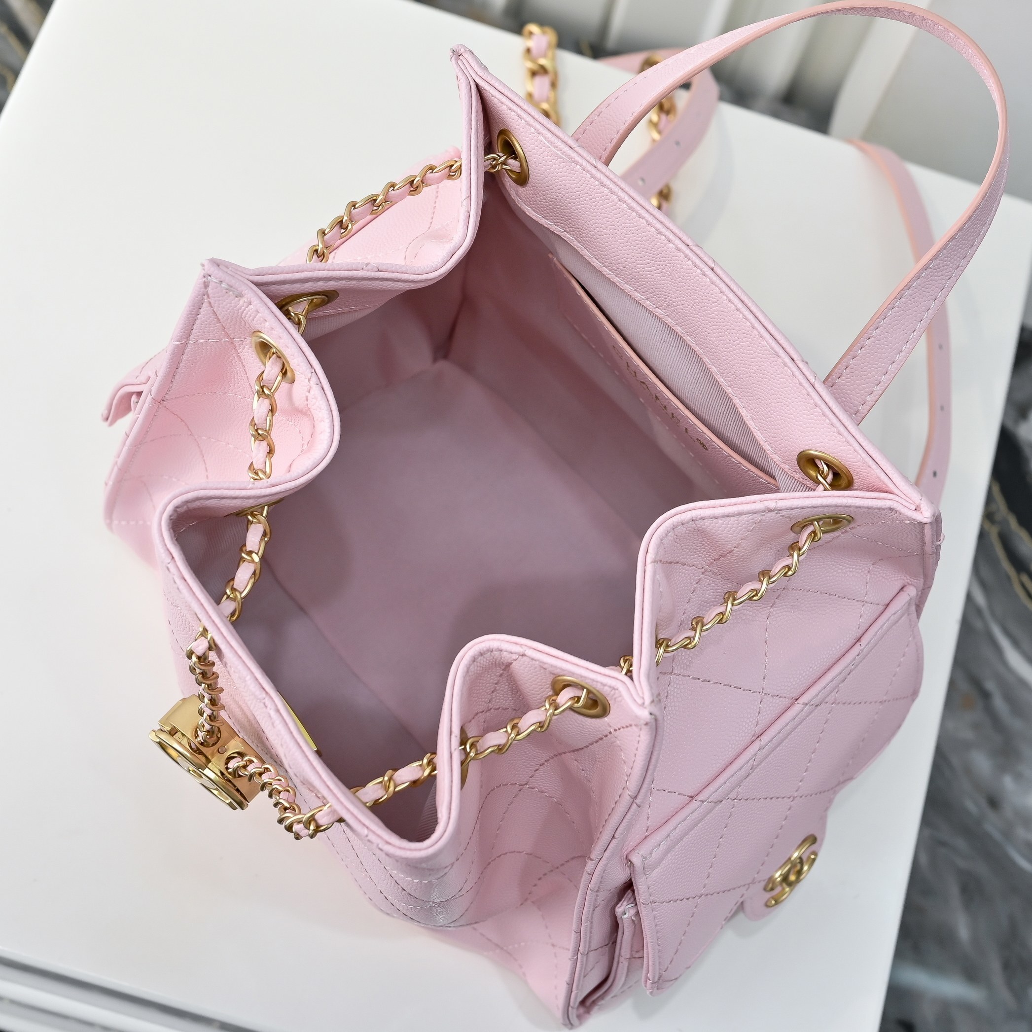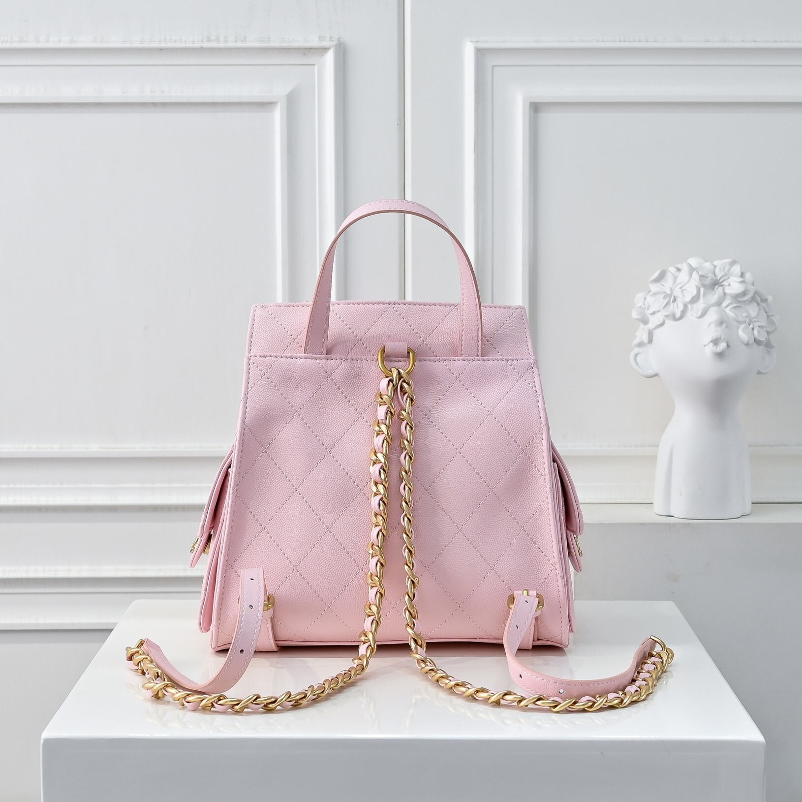 Chanel 25 Medium Size Backpack Grain Effect And Gold Metal Pink 23Cm As5600 B20304 U3645