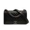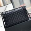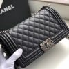 This Chanel Boy Medium handbag is crafted from premium quilted leather in classic black, finished with sleek silver-tone hardware for a bold, modern edge. Designed in a structured 25cm silhouette with the signature Boy clasp and chain strap, it offers versatile shoulder or crossbody wear. A timeless luxury designer bag, perfect for elevating everyday outfits or adding statement sophistication to evening looks.