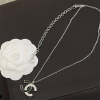 Chanel Cc Logo Pendant Necklace White Stones And Black Enamel Silver