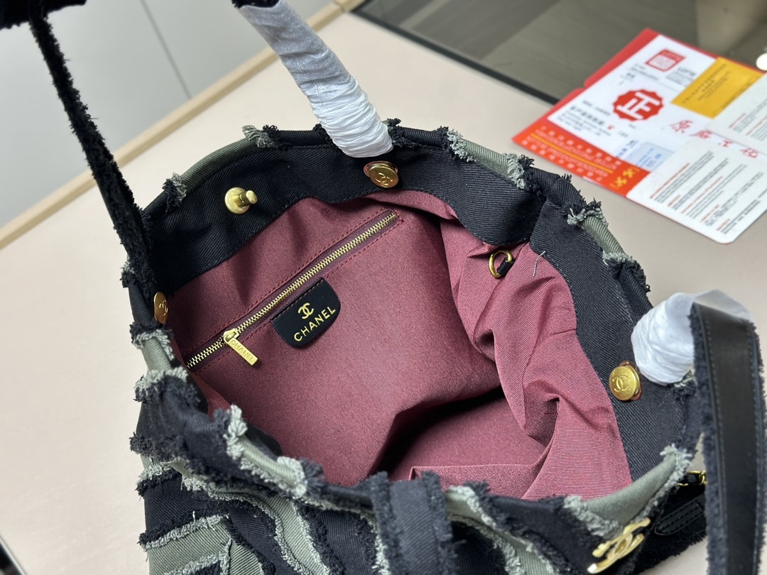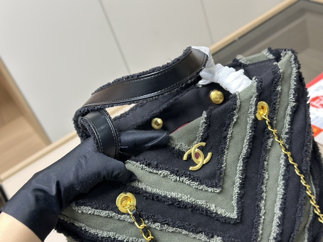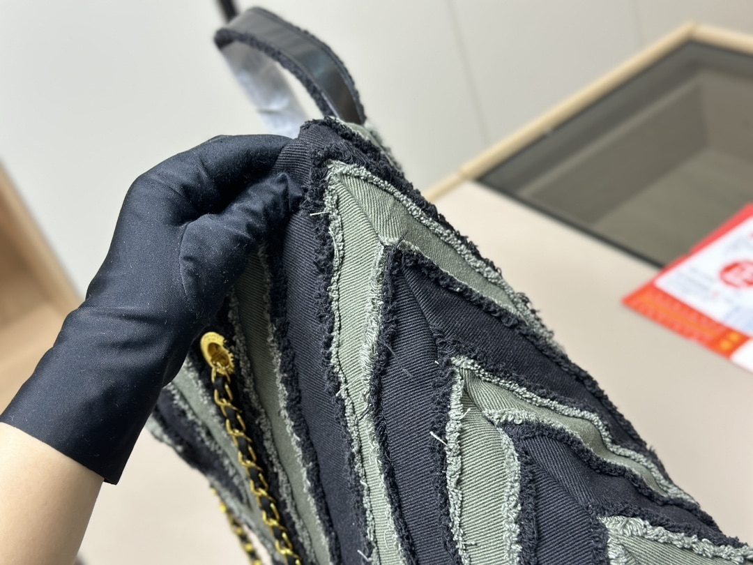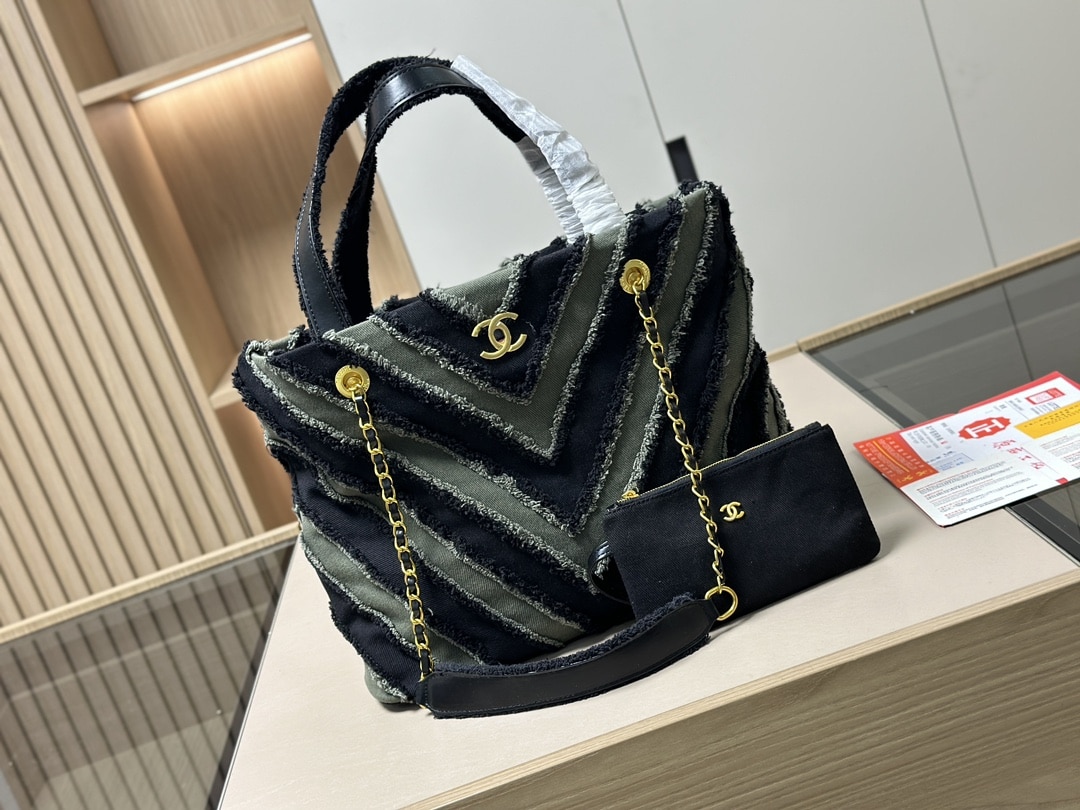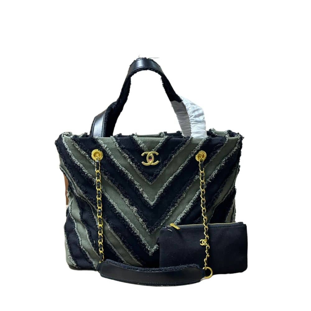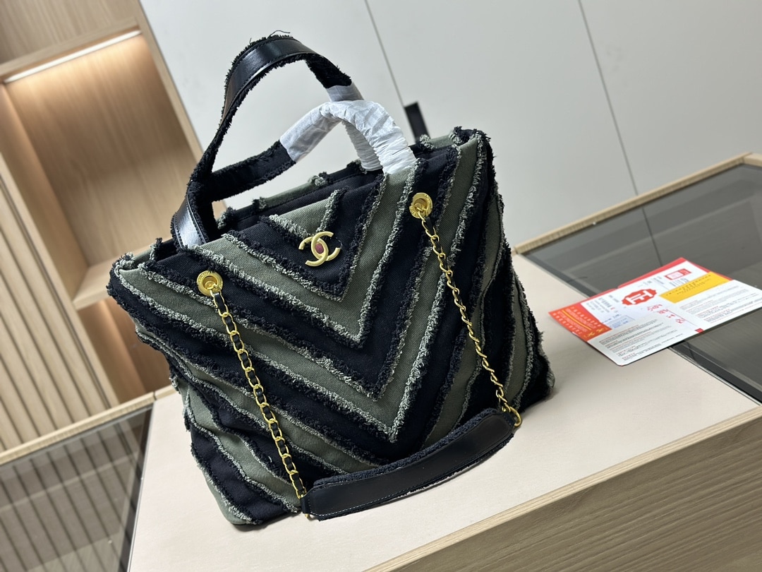 Chanel Chevron Cuba Patchwork Shopper Tote Blue 40Cm