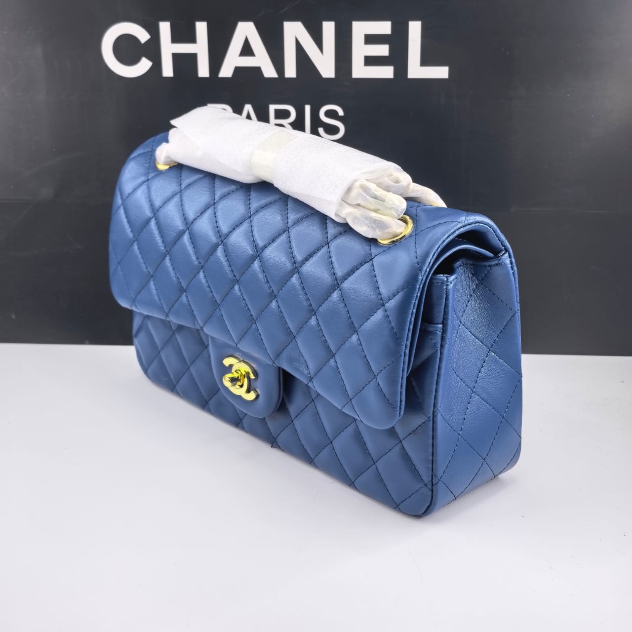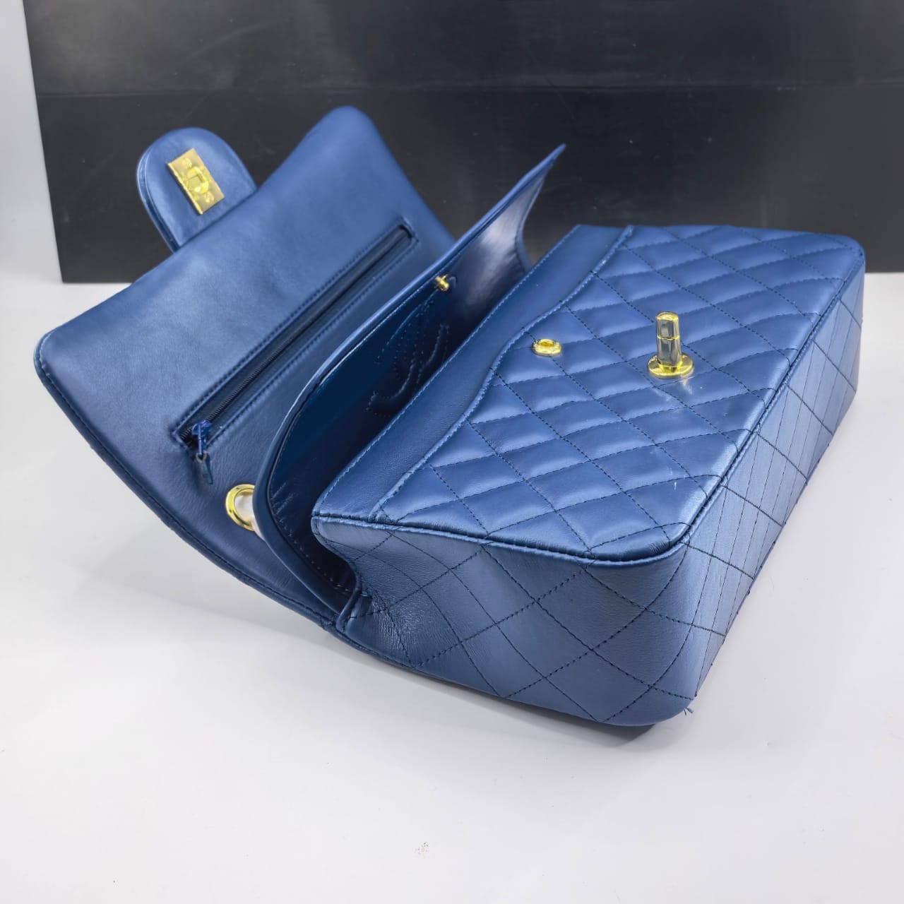 1:1 Replica Bags – Chanel Classic Medium Flap Navy And Gold 25Cm