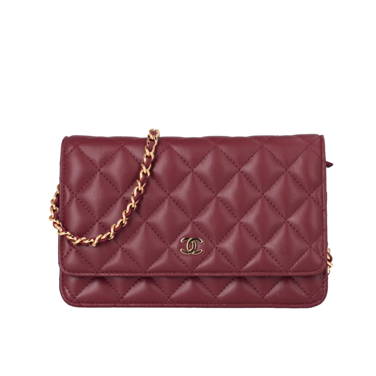 Chanel Classic Wallet On Chain Gold Burgundy 19Cm
