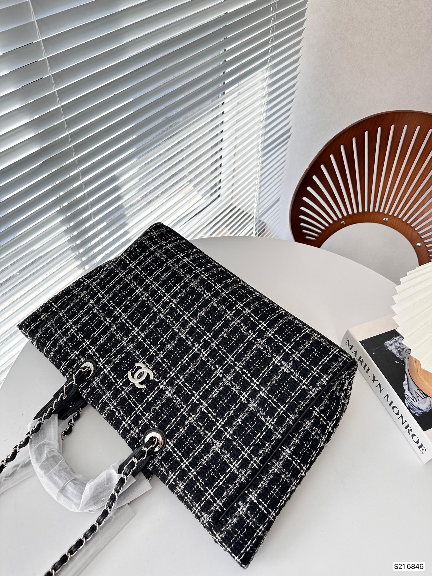 Chanel Deauville Large Tote Shopping Bag Black 38Cm