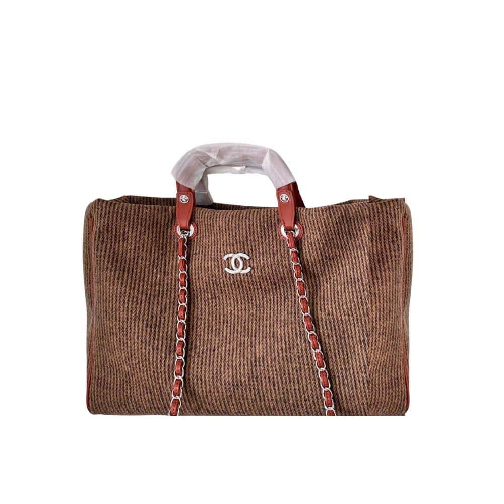 Chanel Deauville Large Tote Shopping Bag Brown 38Cm