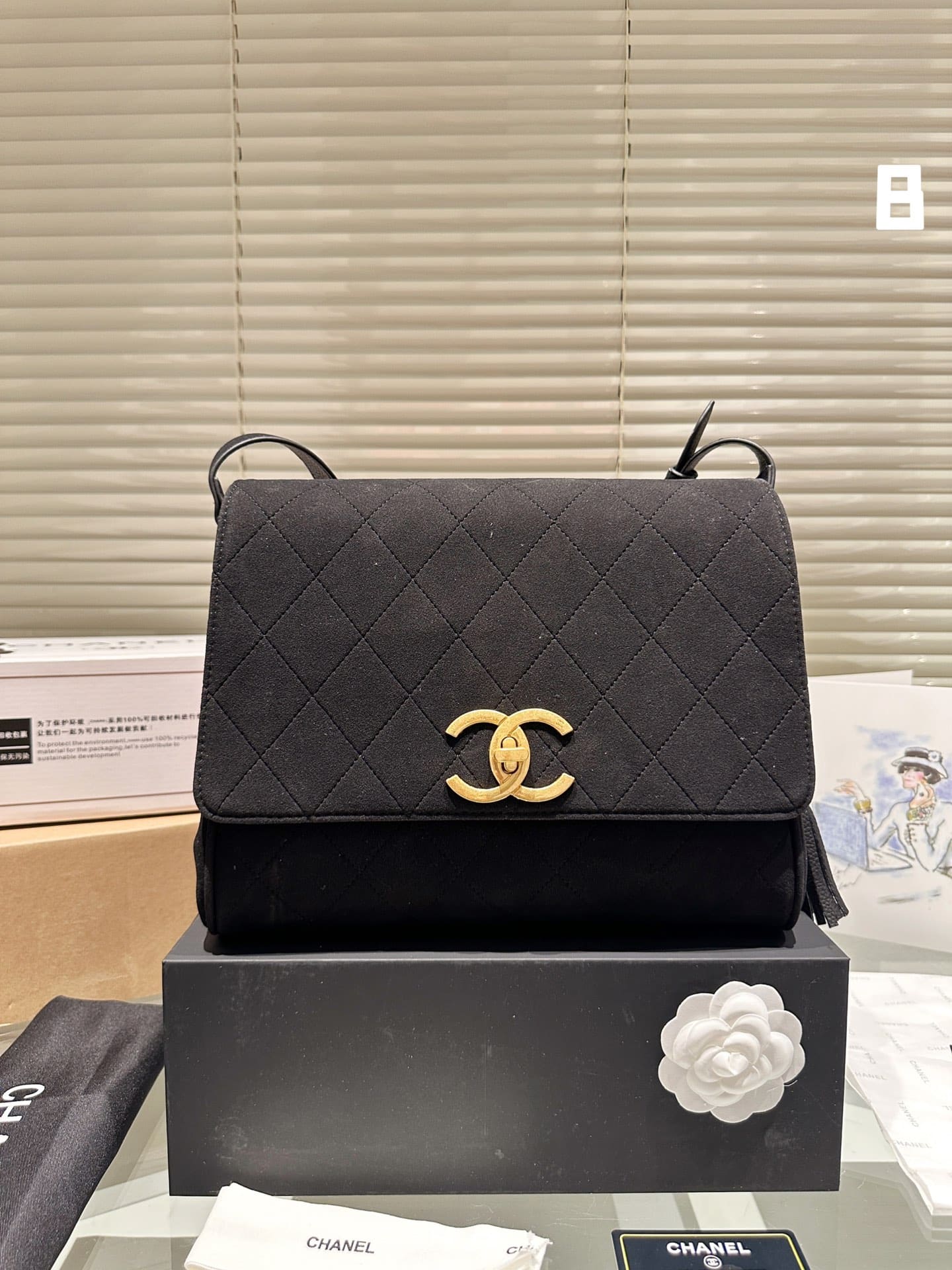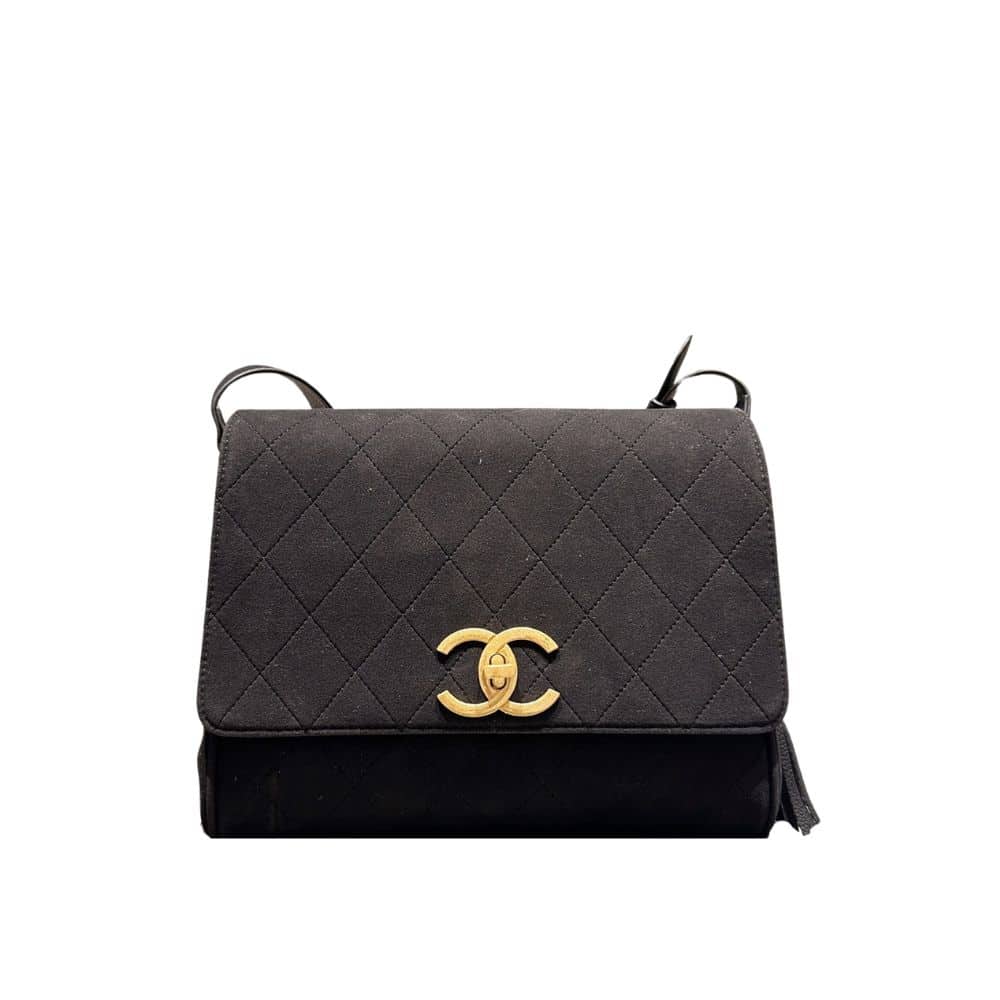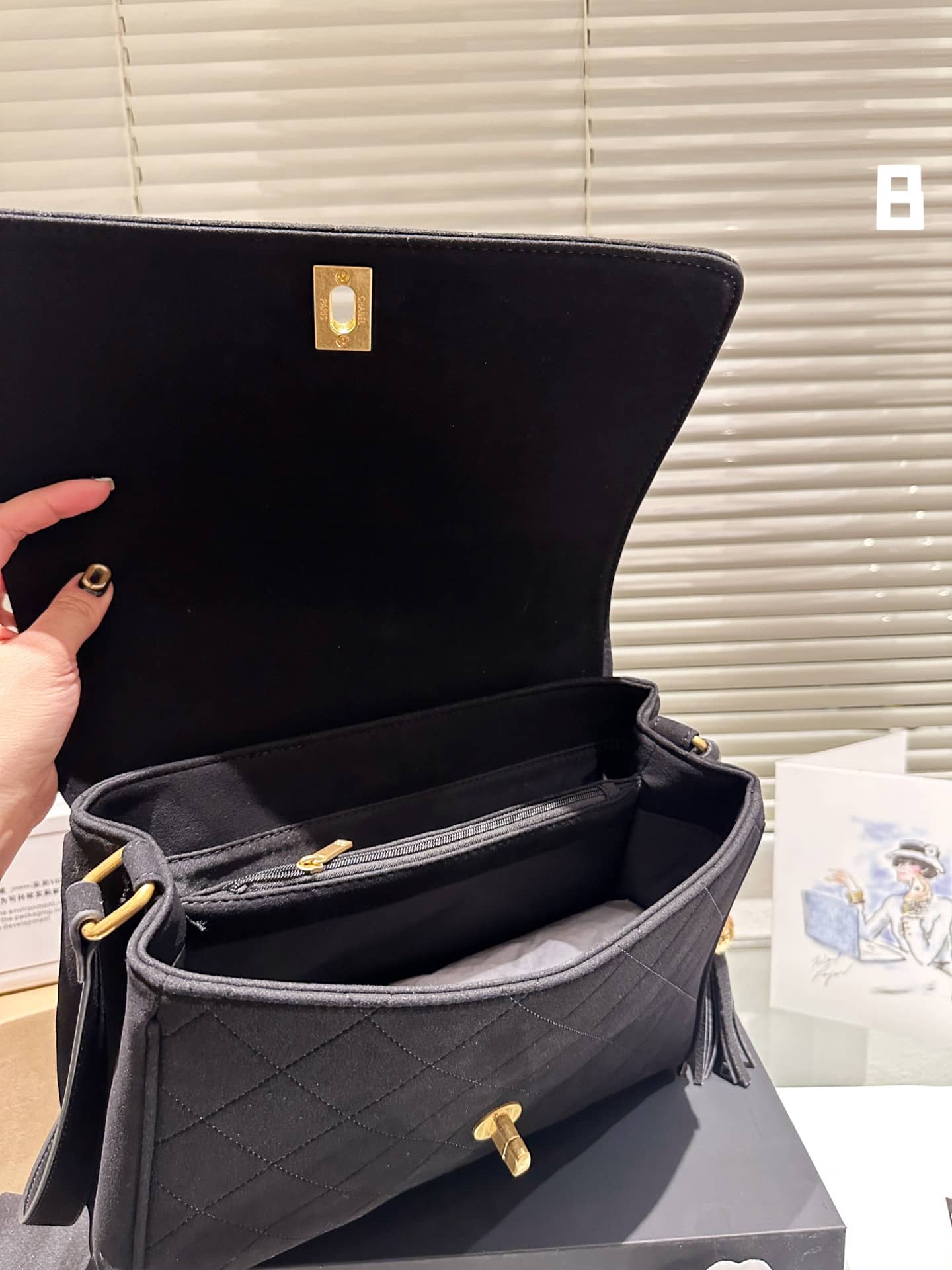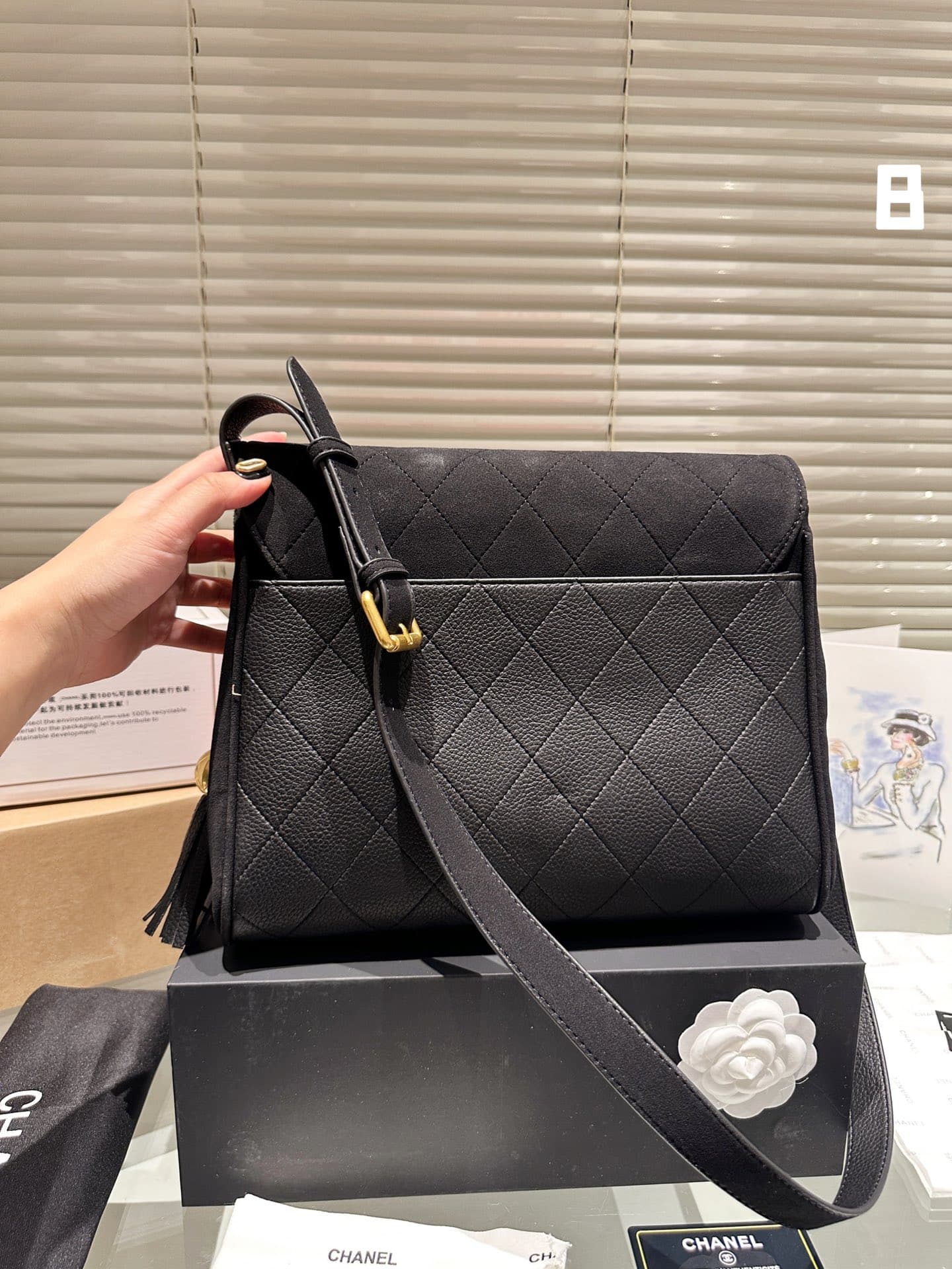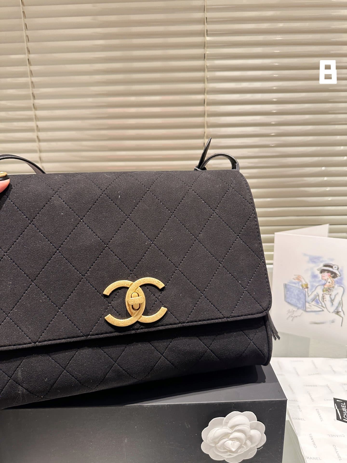 Chanel Flap Bag Pearl Crush In Suede Leather Black 30Cm