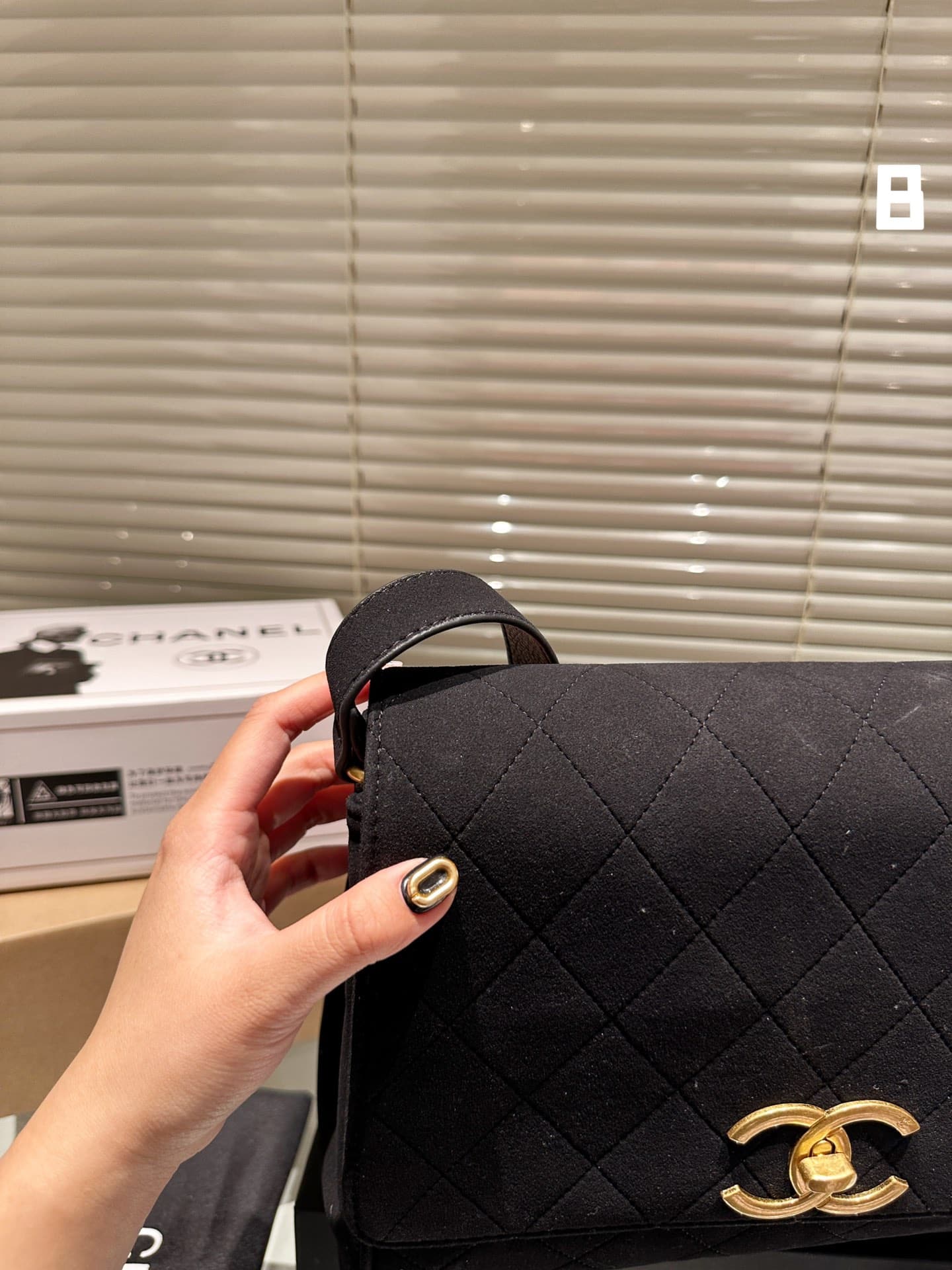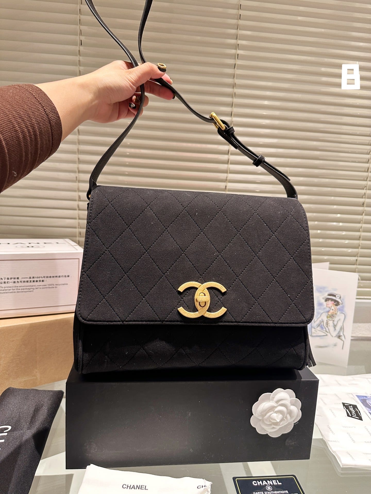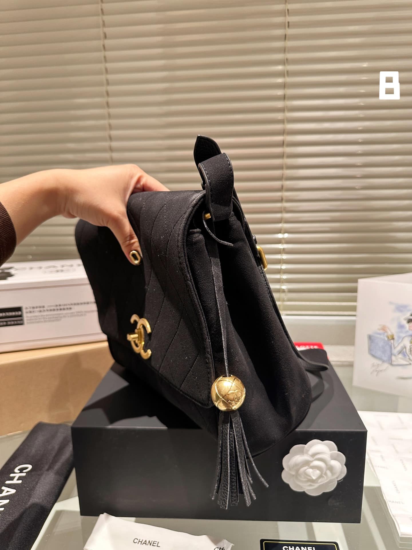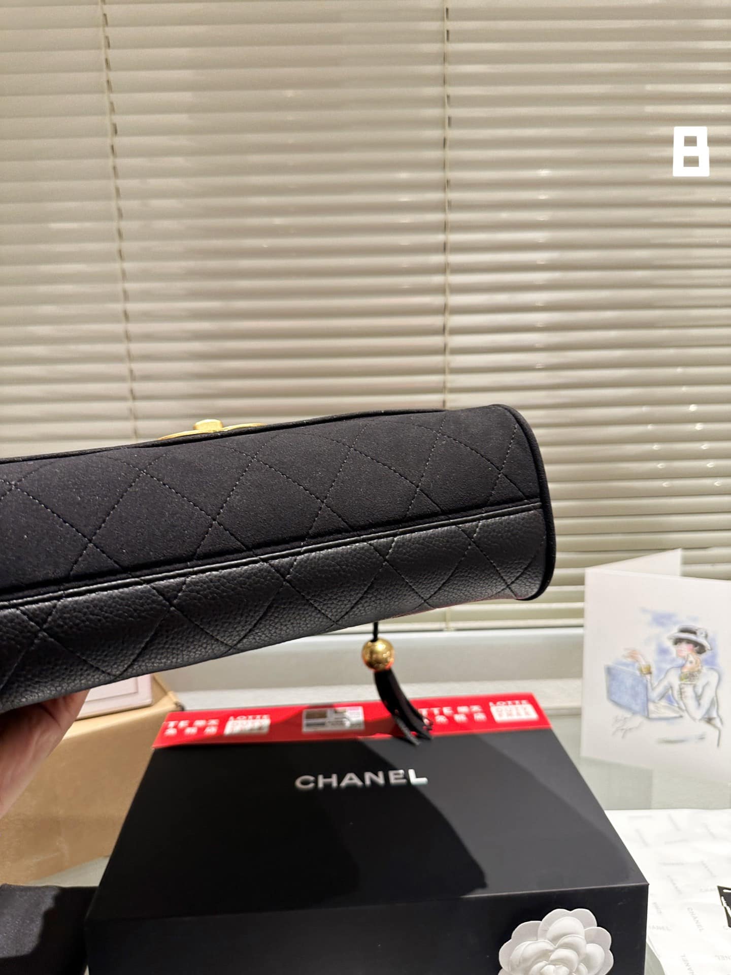 Chanel Flap Bag Pearl Crush In Suede Leather Black 30Cm