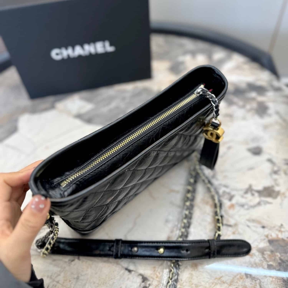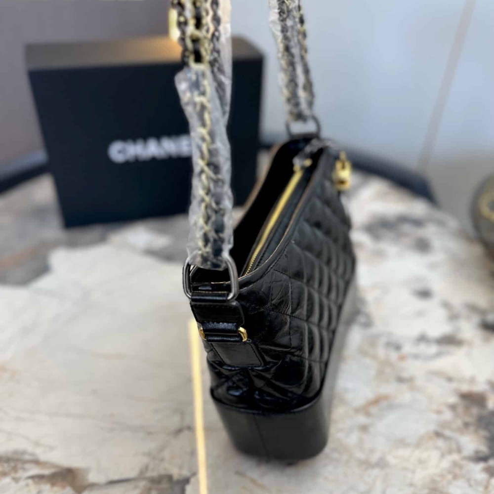 Chanel Gabrielle Small Hobo Bag Smooth Gold Silver Tone Black 20Cm A91810 Y61477 94305