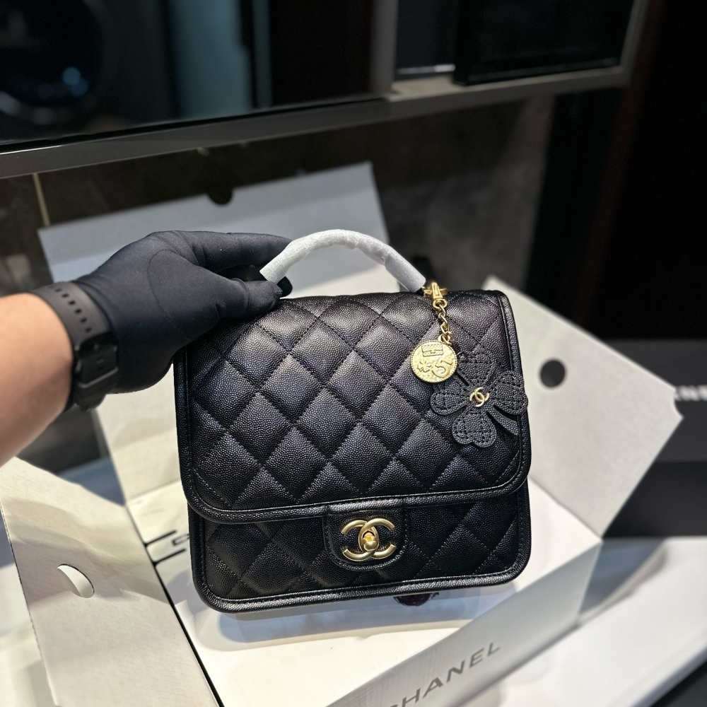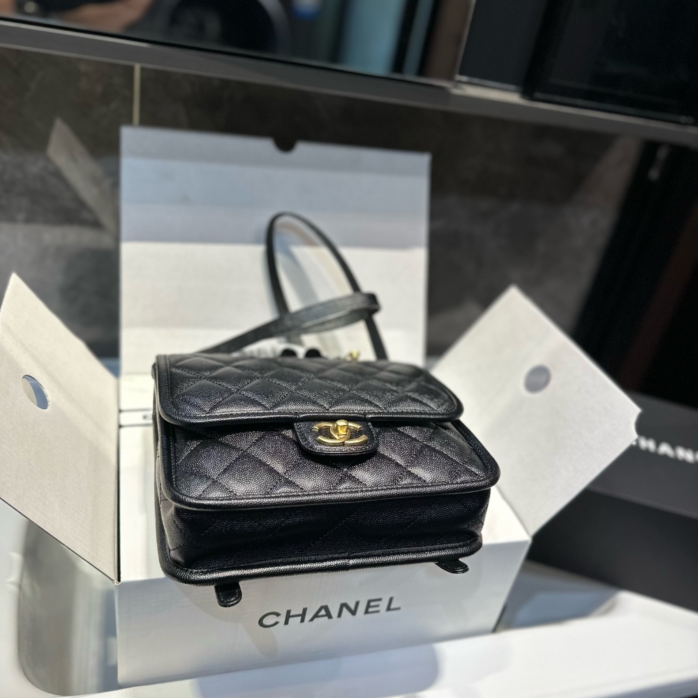 Chanel Grained Shiny And Gold Tone Metal Backpack Black 22Cm As5715 B21400 94305