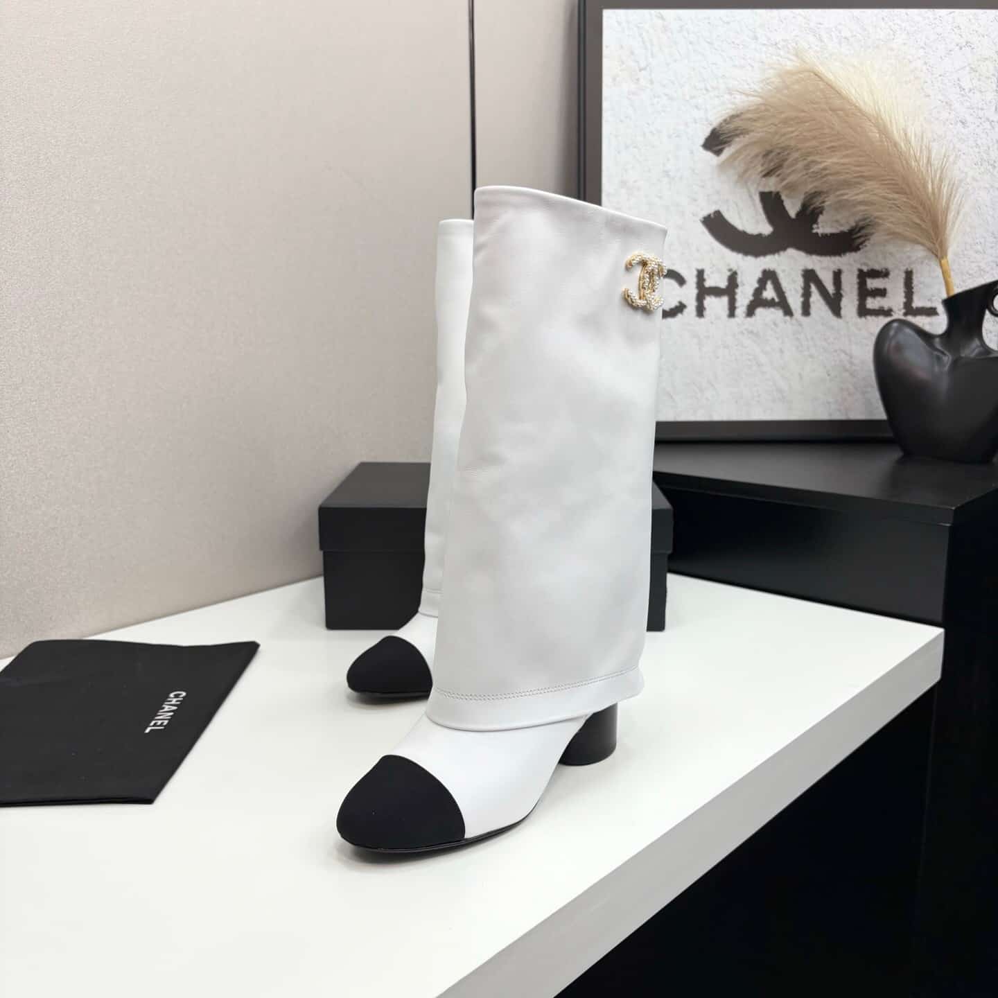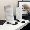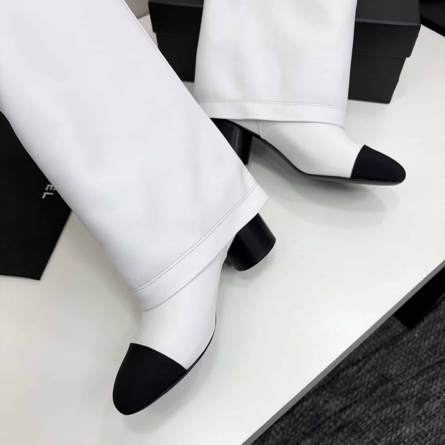 1:1 Replica Shoes – Chanel High Boots Leather And Grosgrain White