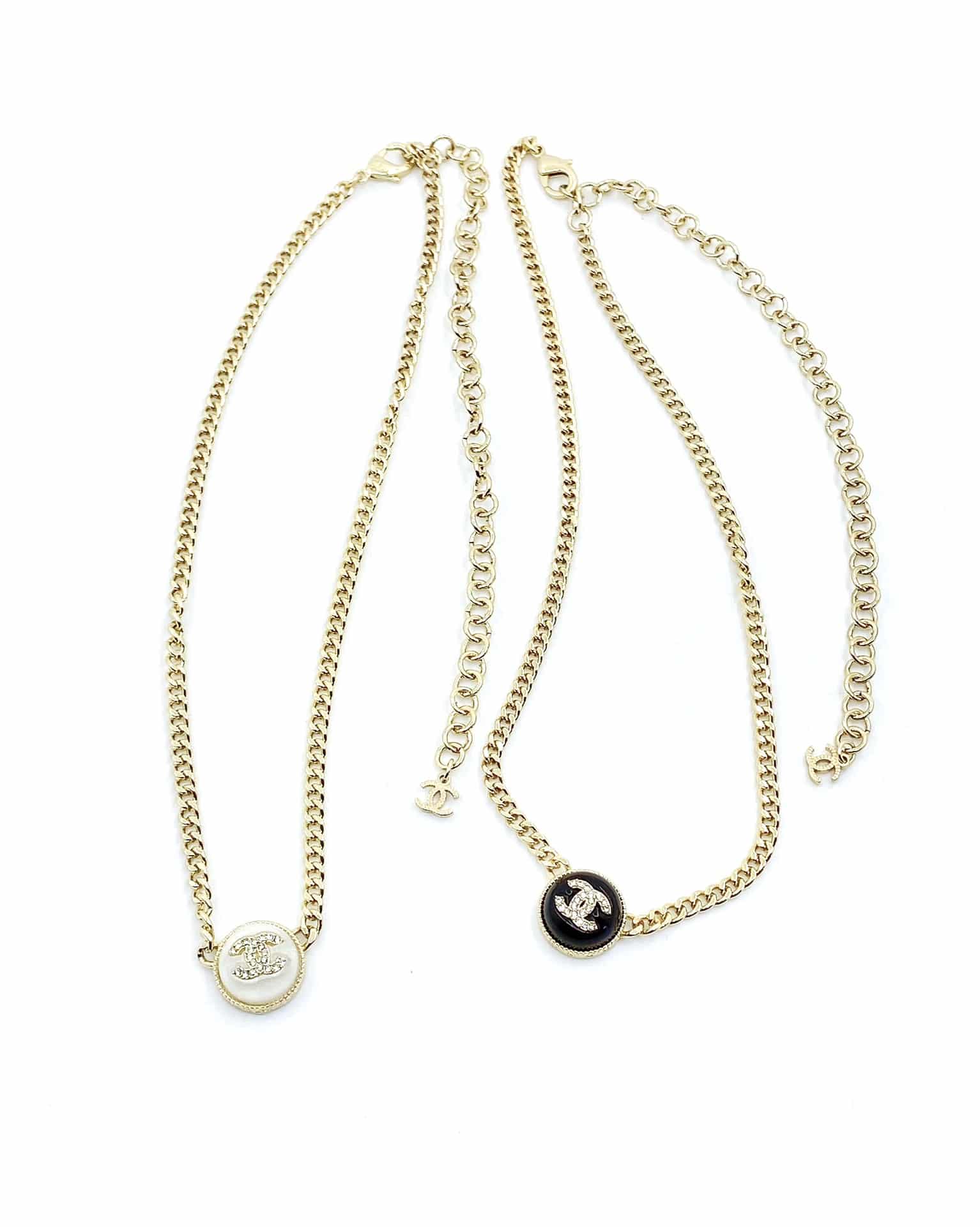 Chanel Logo Cc Necklace In Gold Metal And Silver Resin