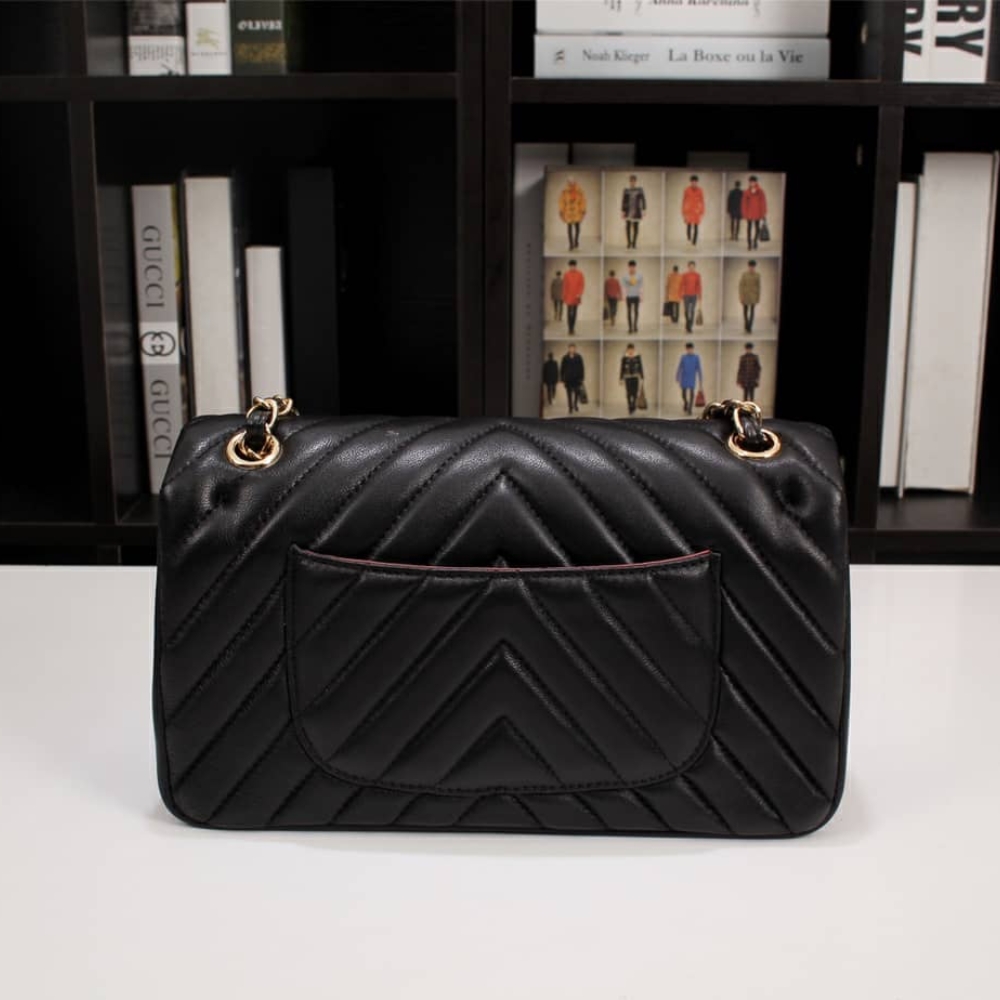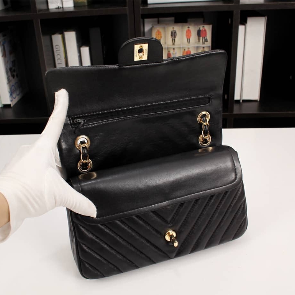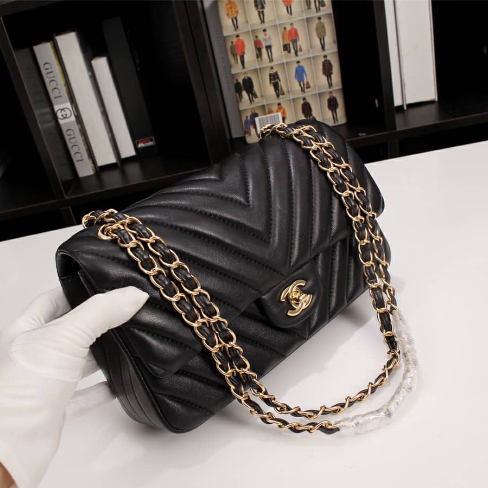 Chanel Medium Classic Flap Bag Chevron Black 25Cm