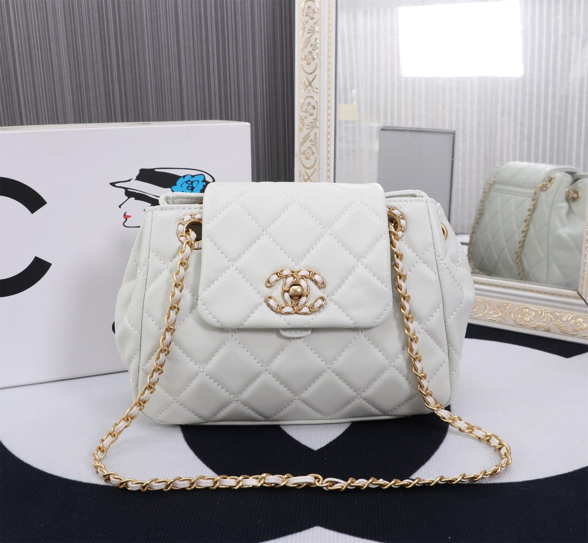 Chanel Mix Accordion Cc Flap Bag Quilted Glazed White 23Cm