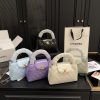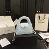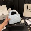 The features a compact, structured silhouette with the signature diamond quilting and the iconic CC logo on the front. The small top handles add a classic touch, and the 19 cm size makes it an elegant option for special occasions or daily use.