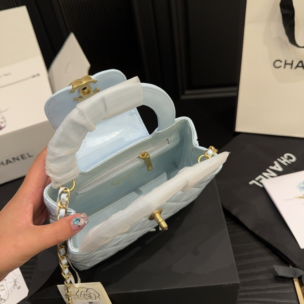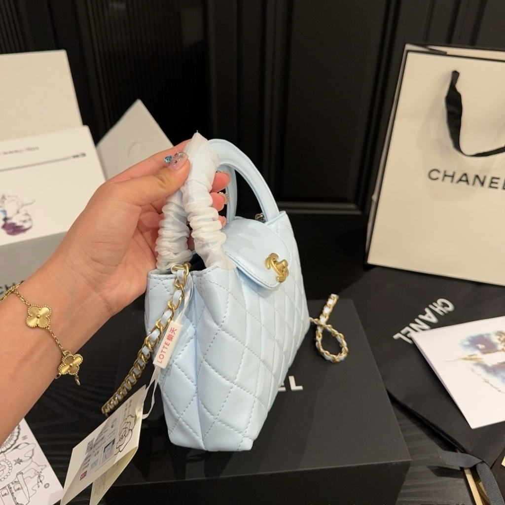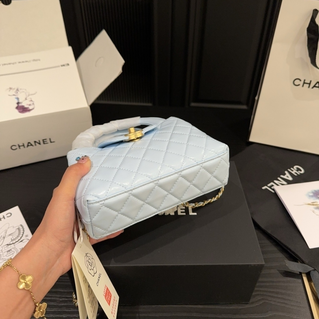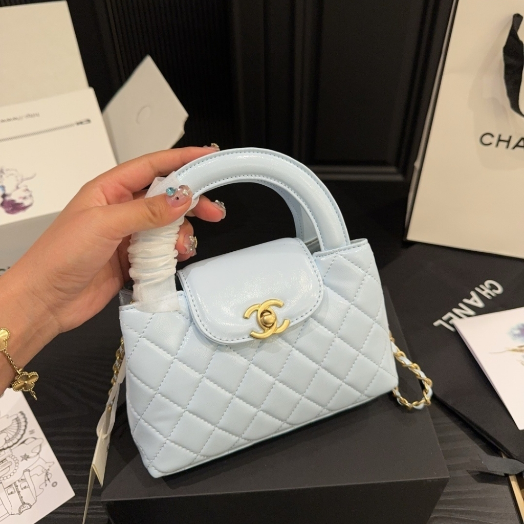Replica 1:1 – Chanel Small Kelly Shopper Shiny And Gold Hardware Light Blue 19cm