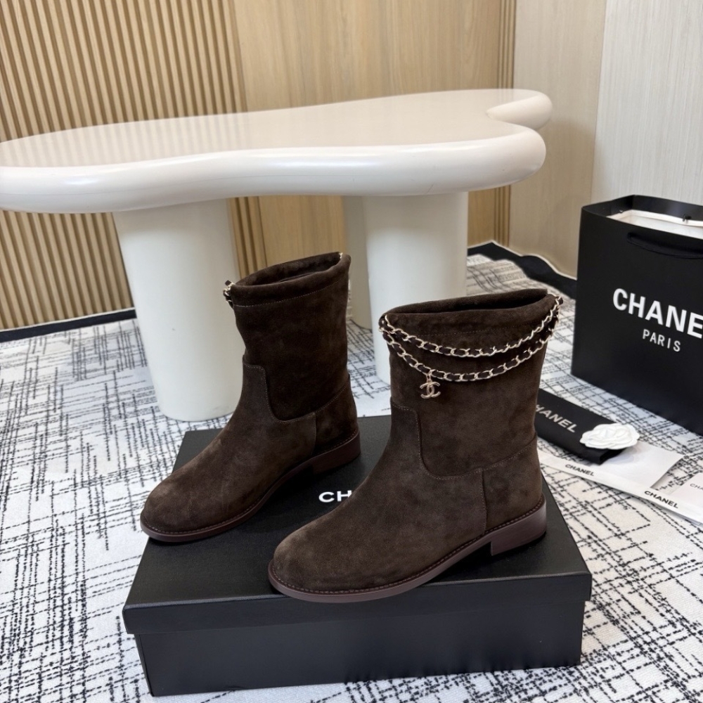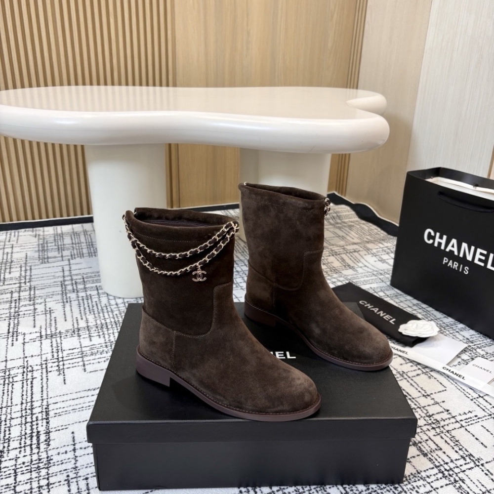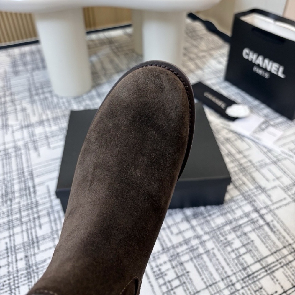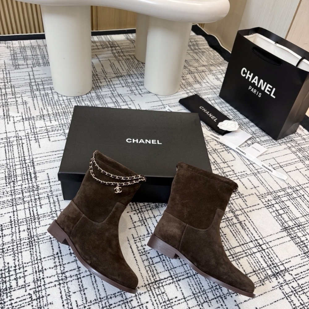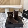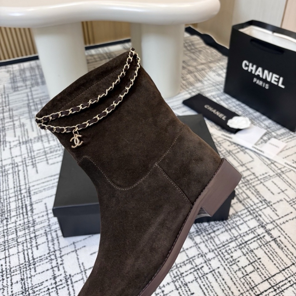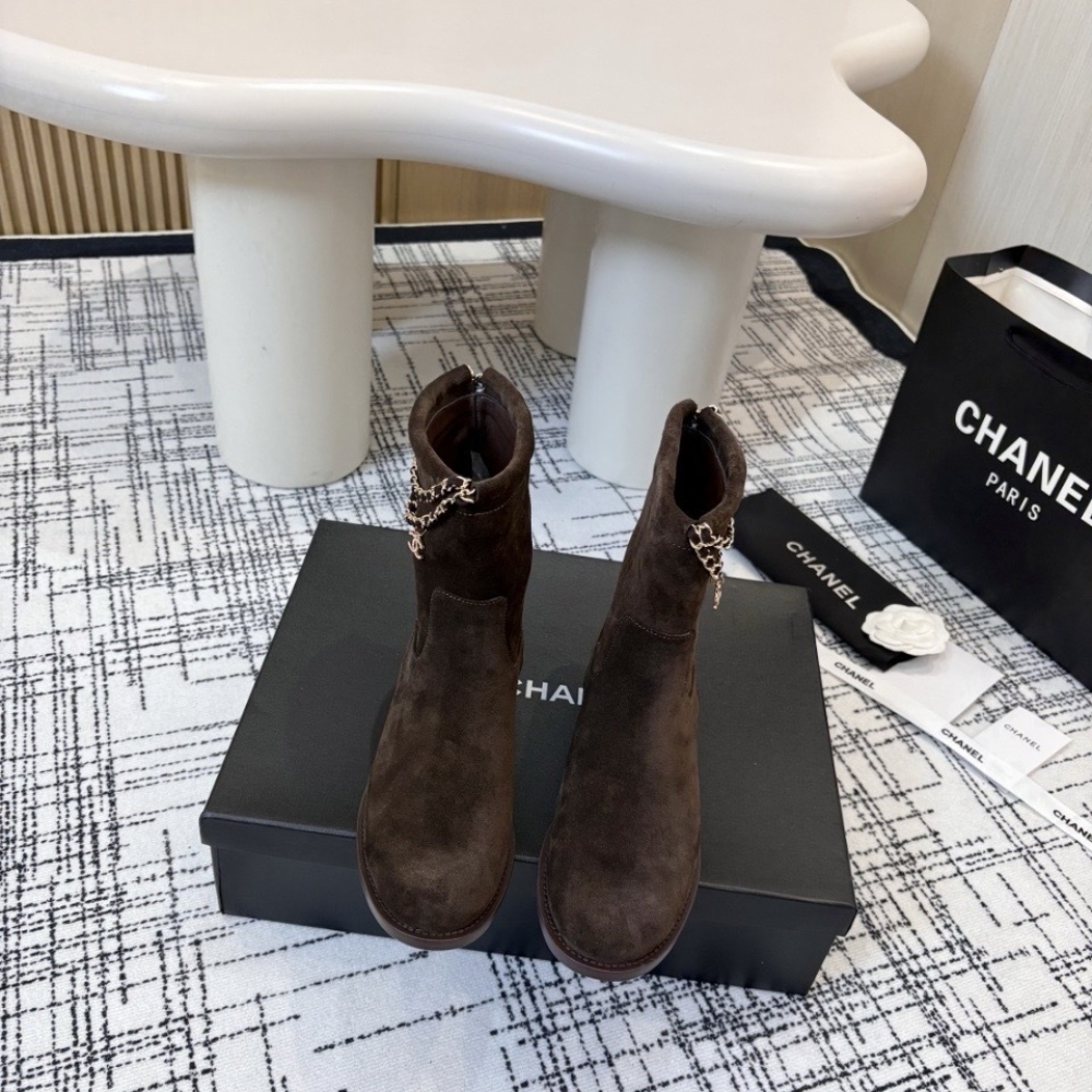 Chanel Suede Ankle Boots Brown