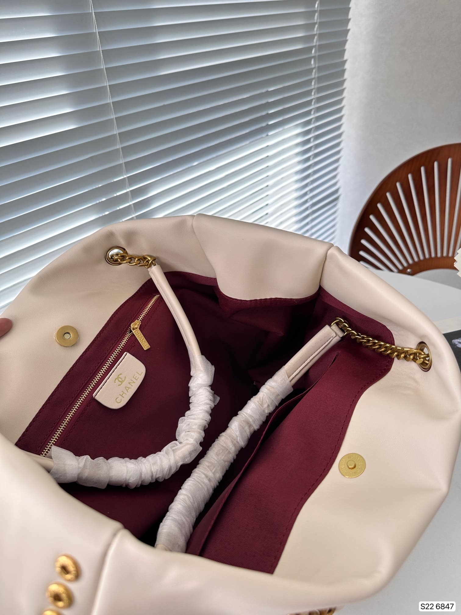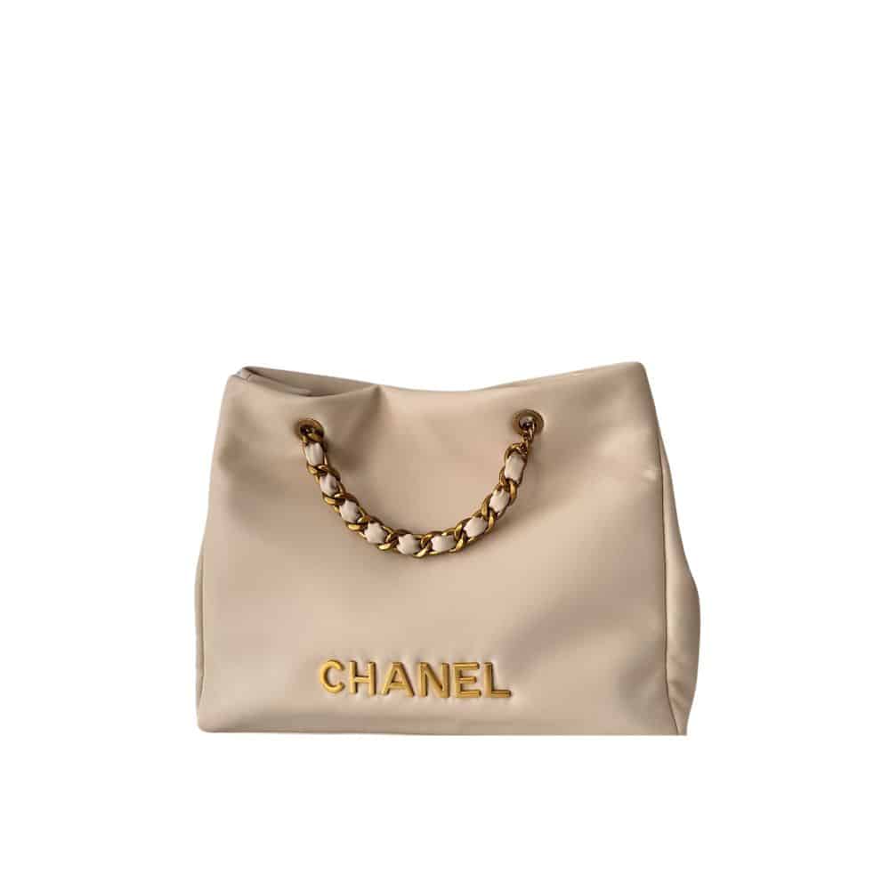 Chanel Tote Bag With Chain Beige 40Cm