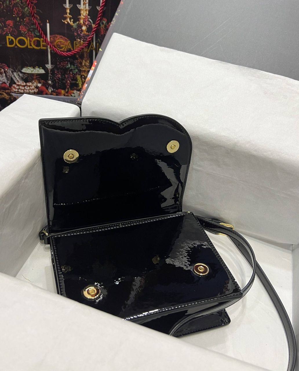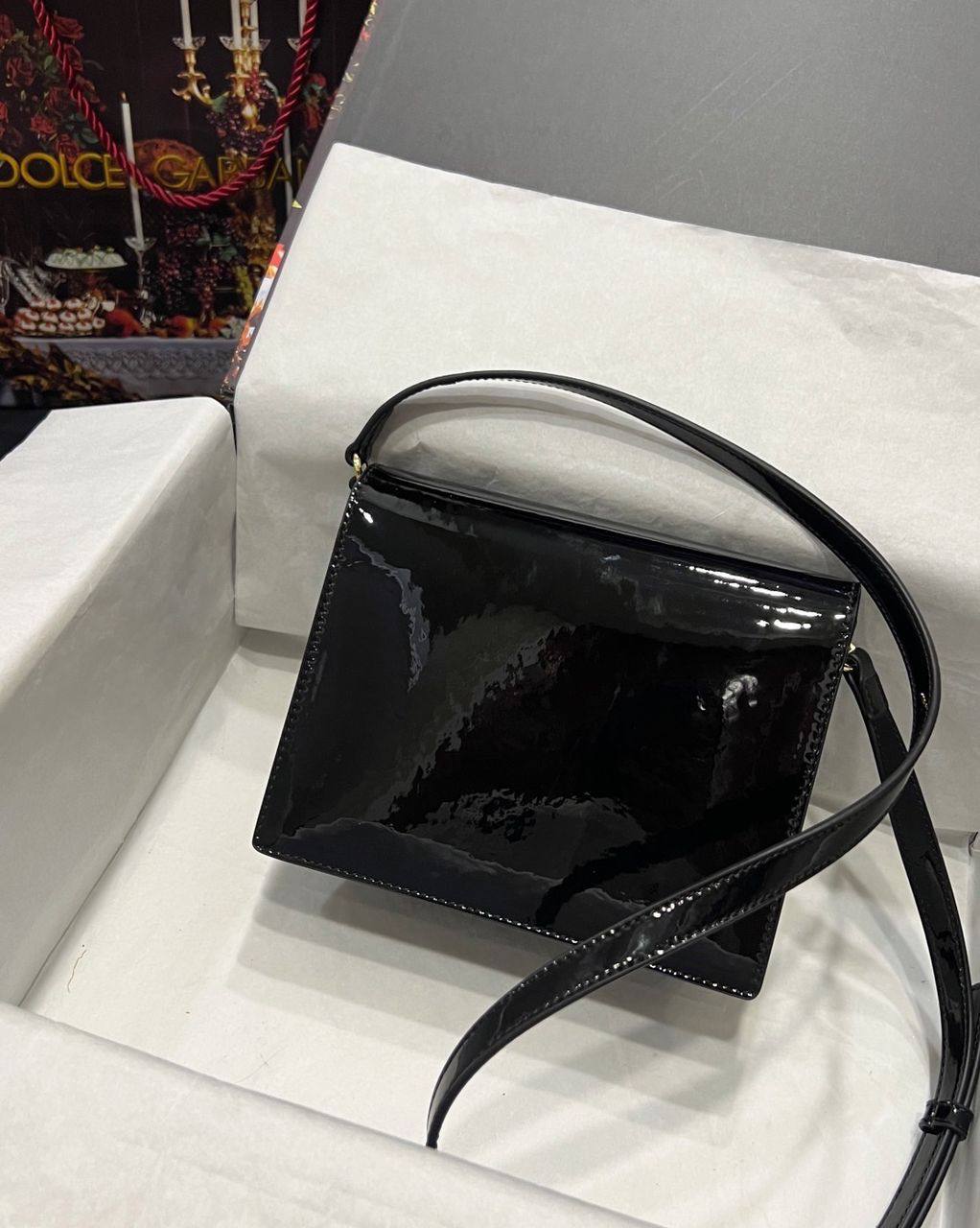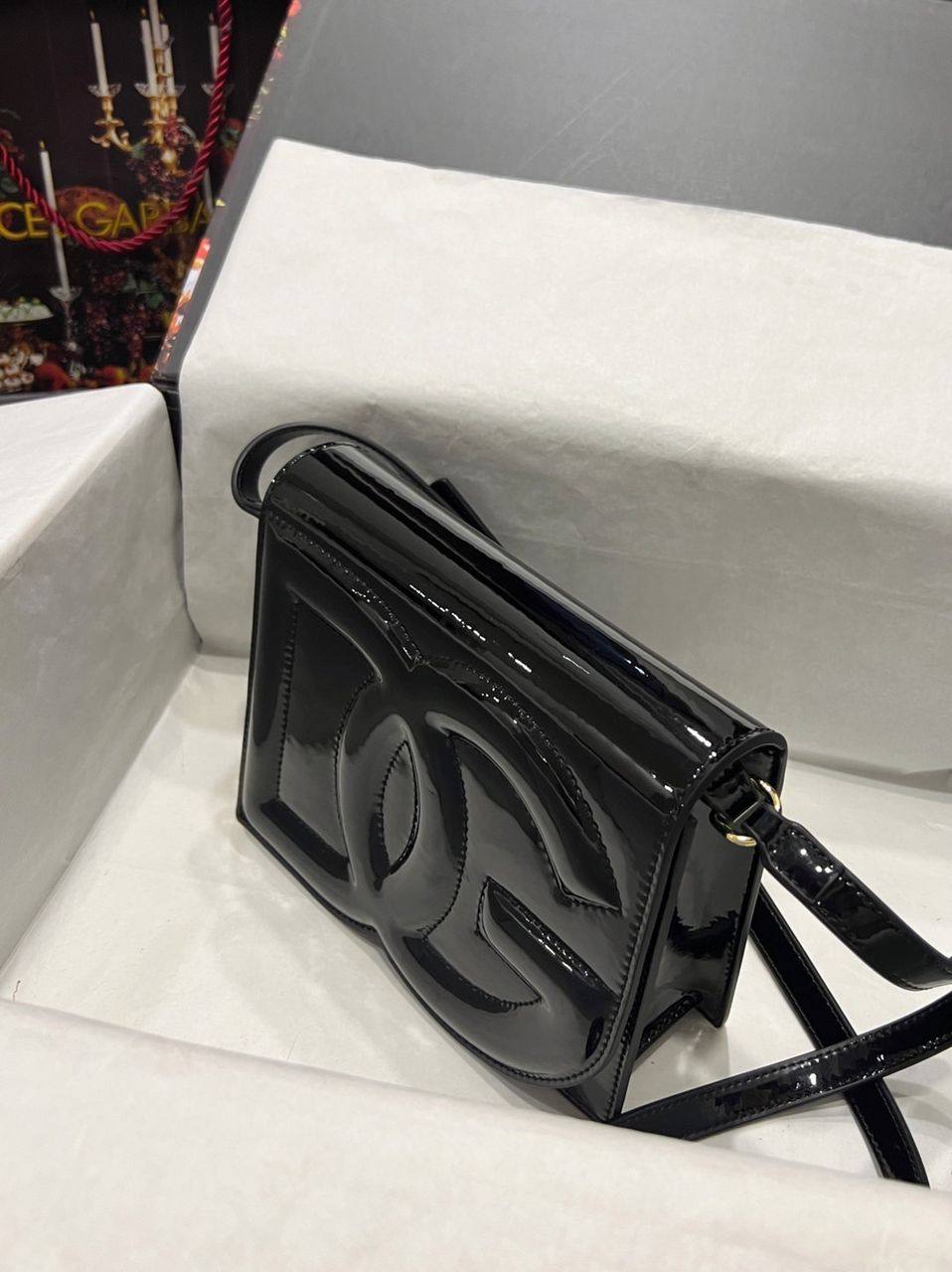 Dolce Gabbana Patent Leather Logo Bag Crossbody Black 20Cm Bb7287A147180999