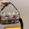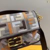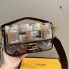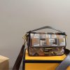 - Finished with a dark brown leather trim and embellished with an FF clasp.