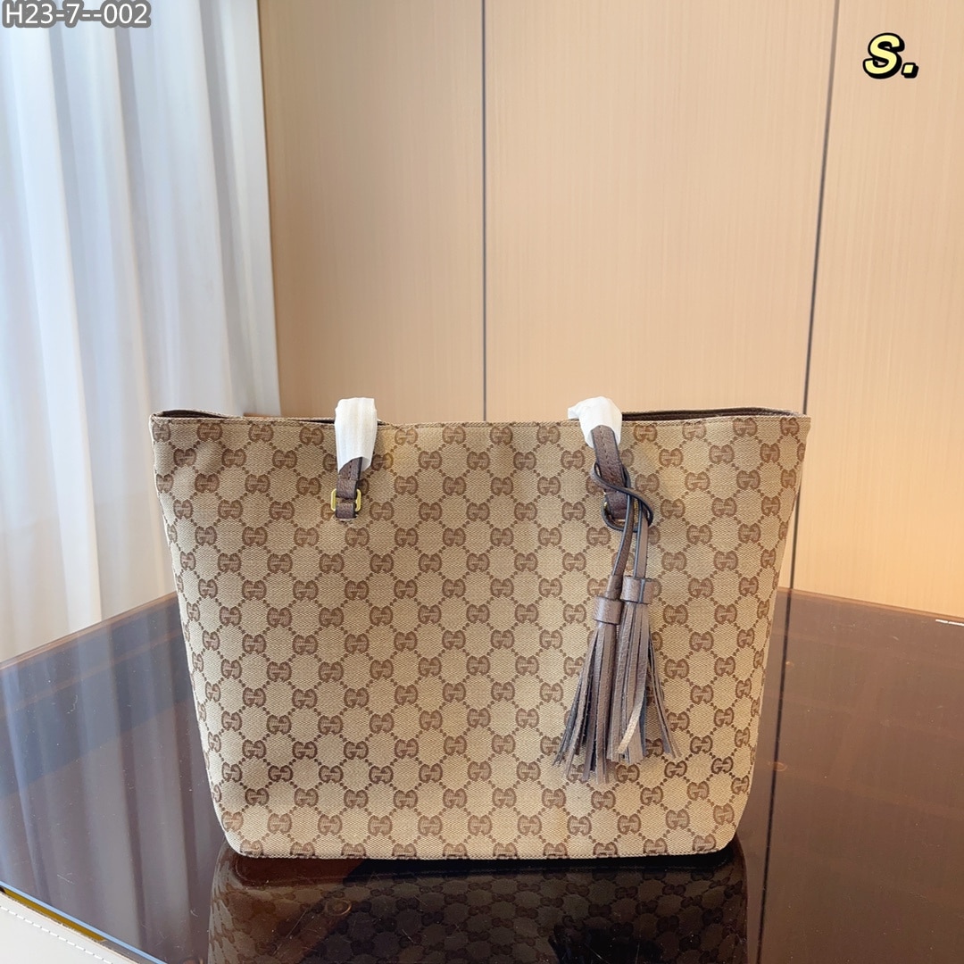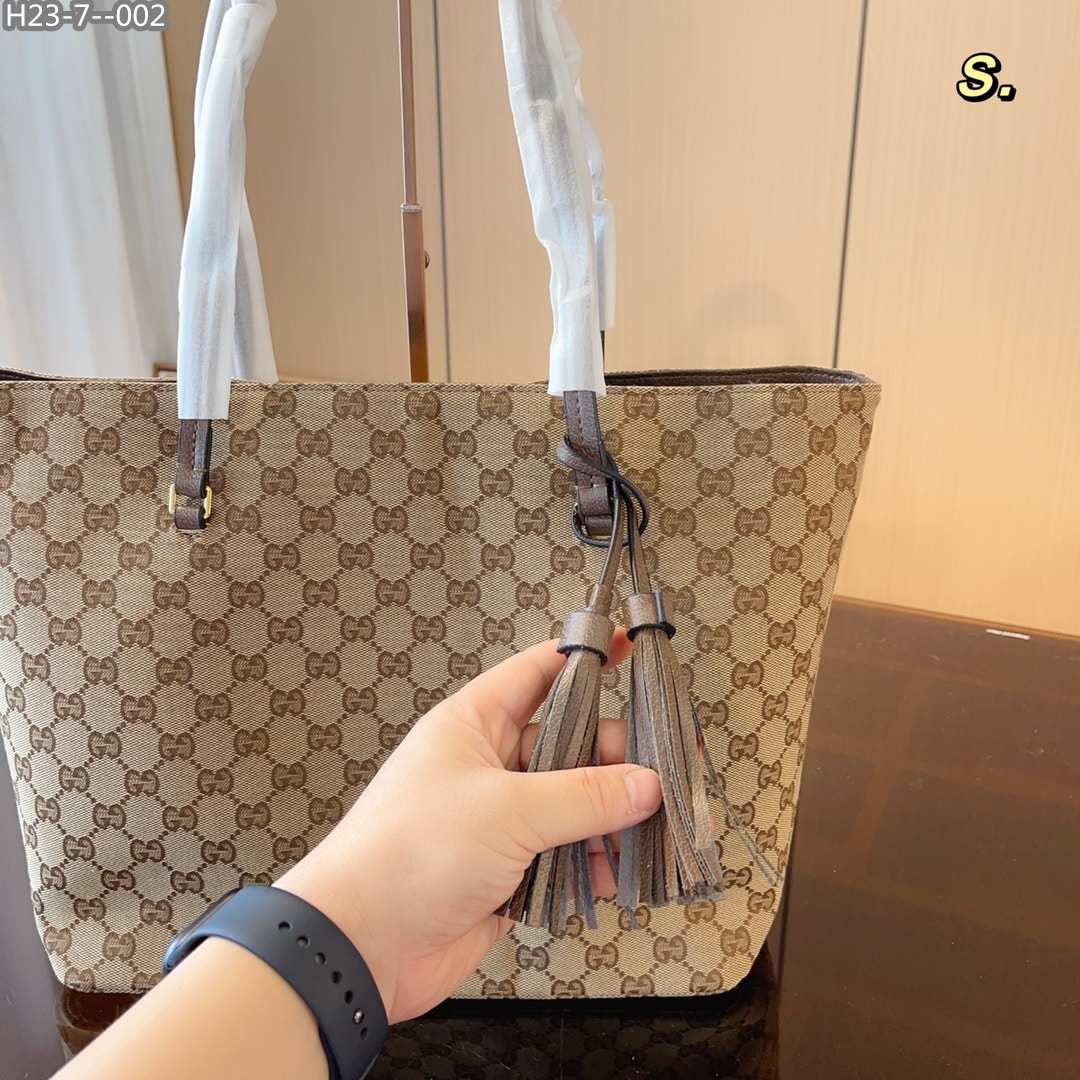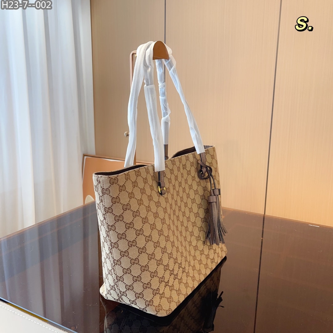 Gucci Gg Canvas Fringe Bamboo Tote Bag Beige Brown 31Cm