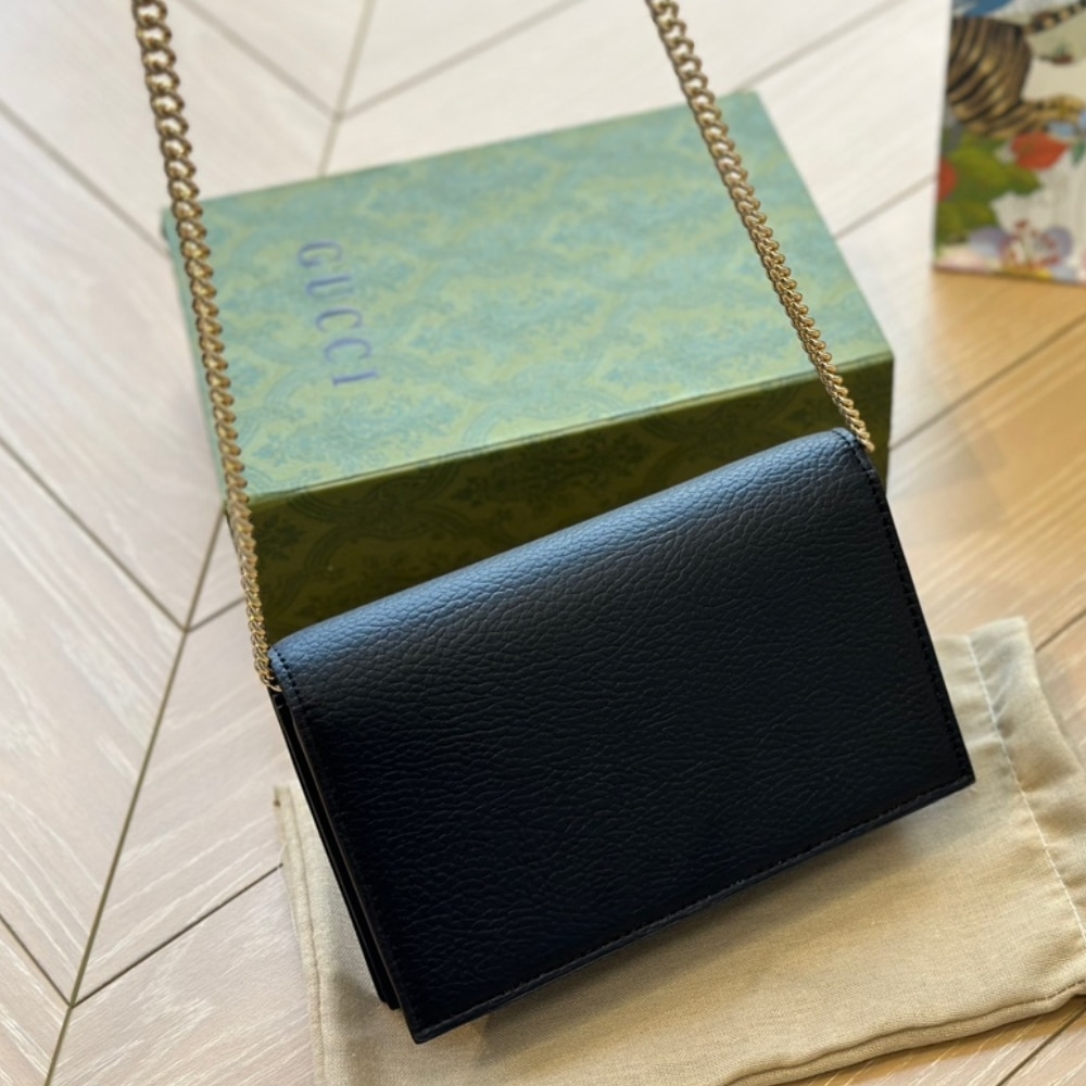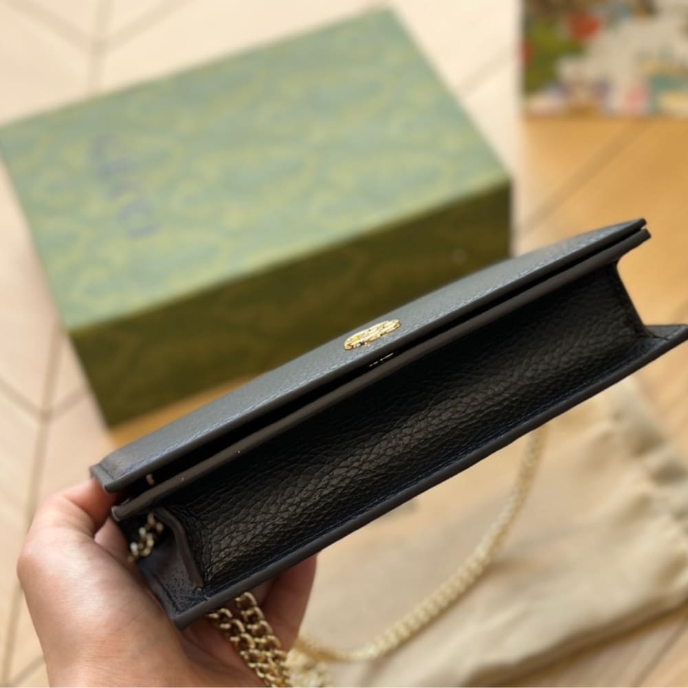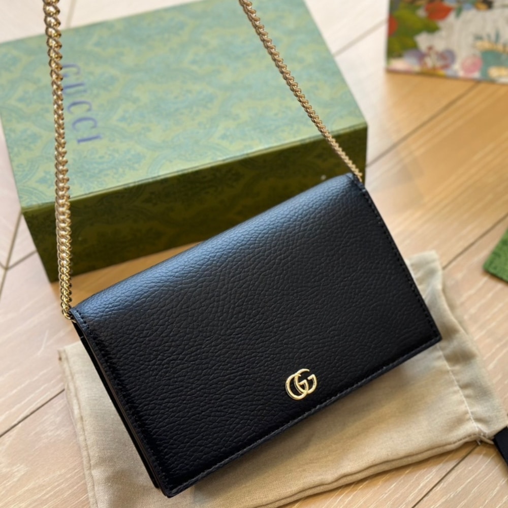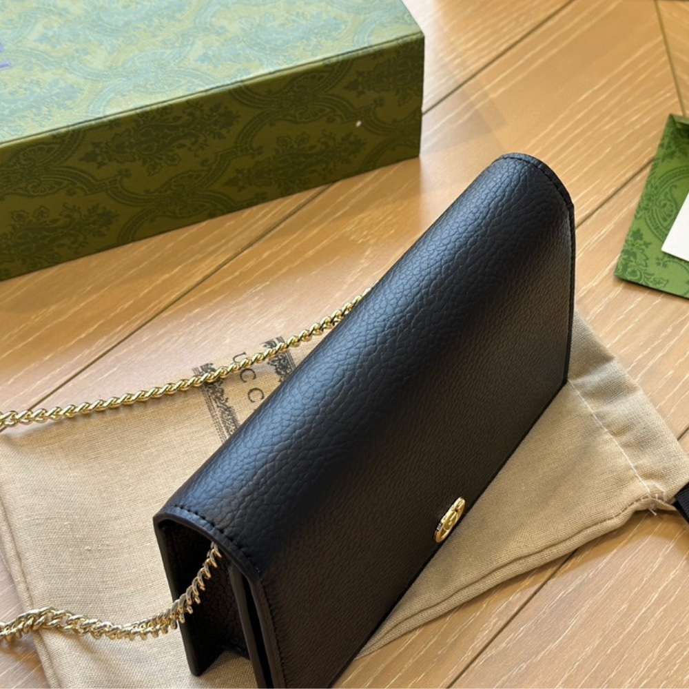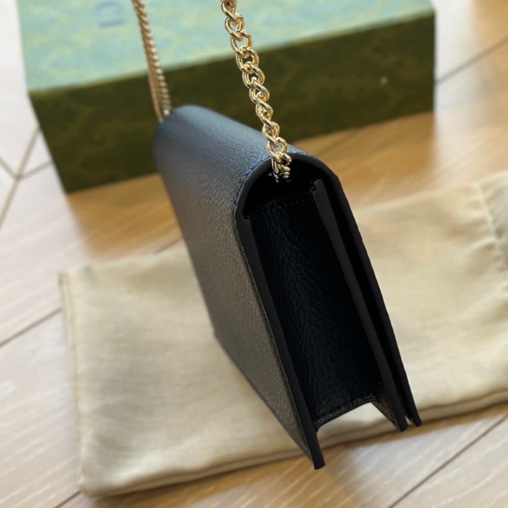Gucci Gg Marmont Wallet On Chain Black Leather 20Cm 497985 Cao0G 1000