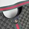 Gucci Giglio presents the black denim small tote bag for men, available exclusively online. The style is a tribute to the House’s Italian roots and the spirit of reinvention. Crafted in black GG denim, the north-south design features the Web trim, and is complete with a detachable pouch.