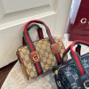 Inspired by the Gucci duffle silhouette, the Mini GG handbag continues to revisit the House’s codes and celebrated travel legacy with different materials. This version is crafted in suede for an added touch of sophistication, which speaks to its effortless elegance while highlighting the signature GG motif.