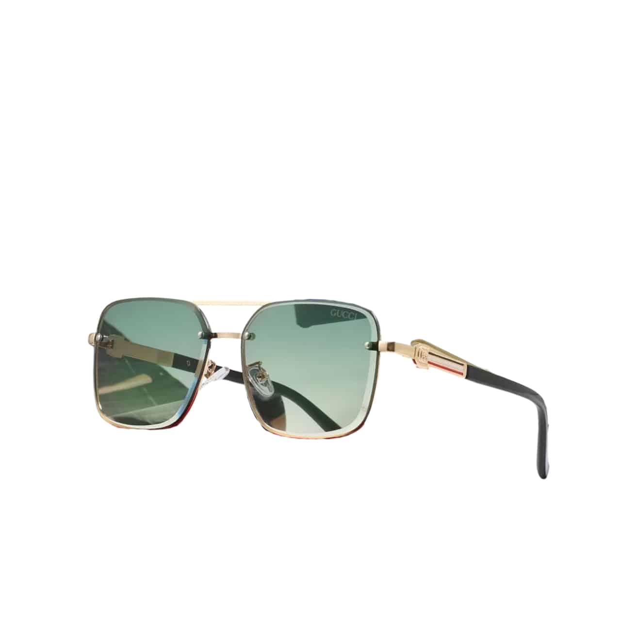 Gucci Square Gradient Vintage Gold Metal Sunglasses Green