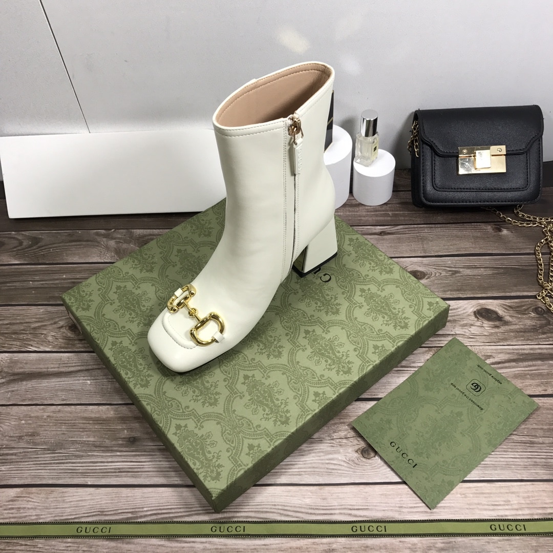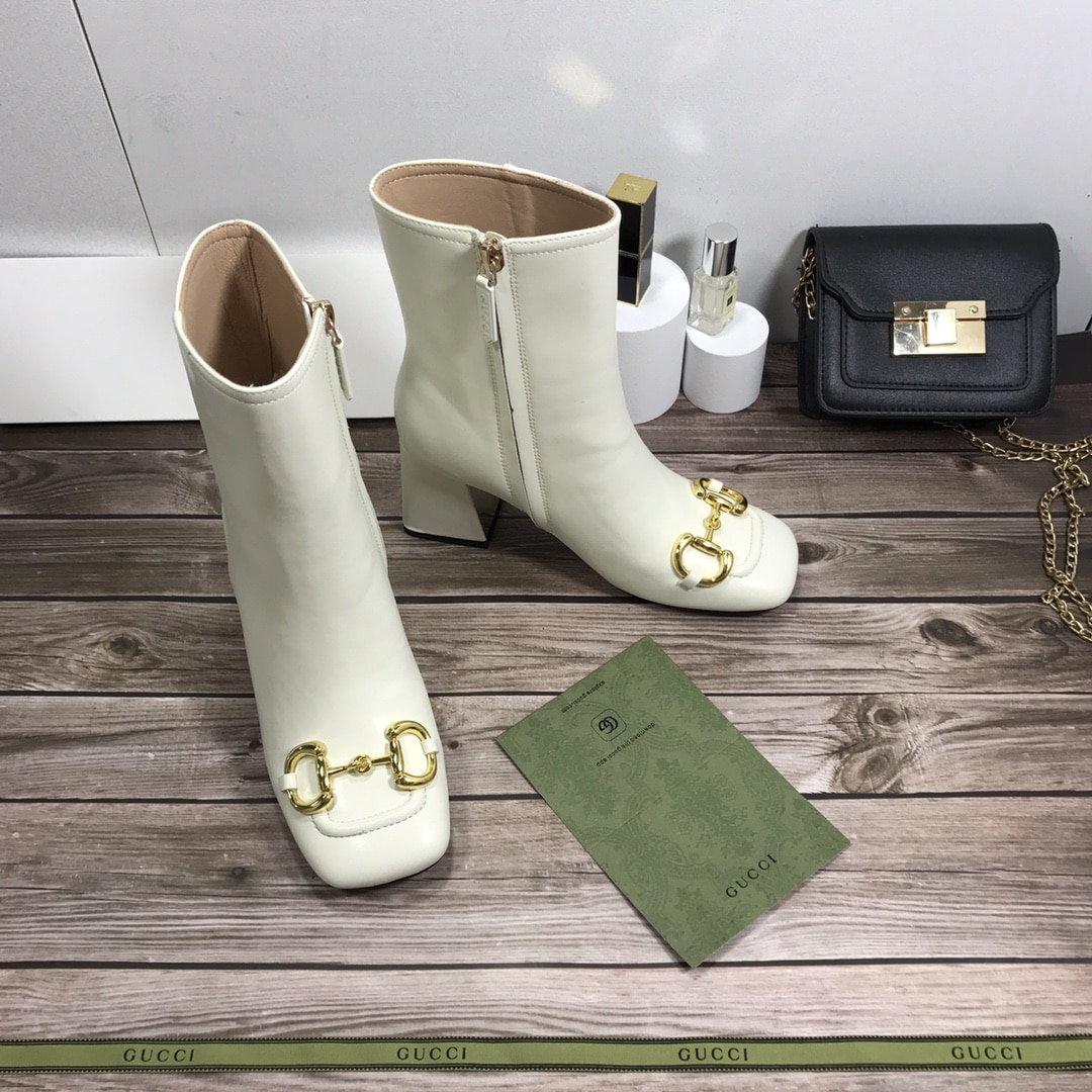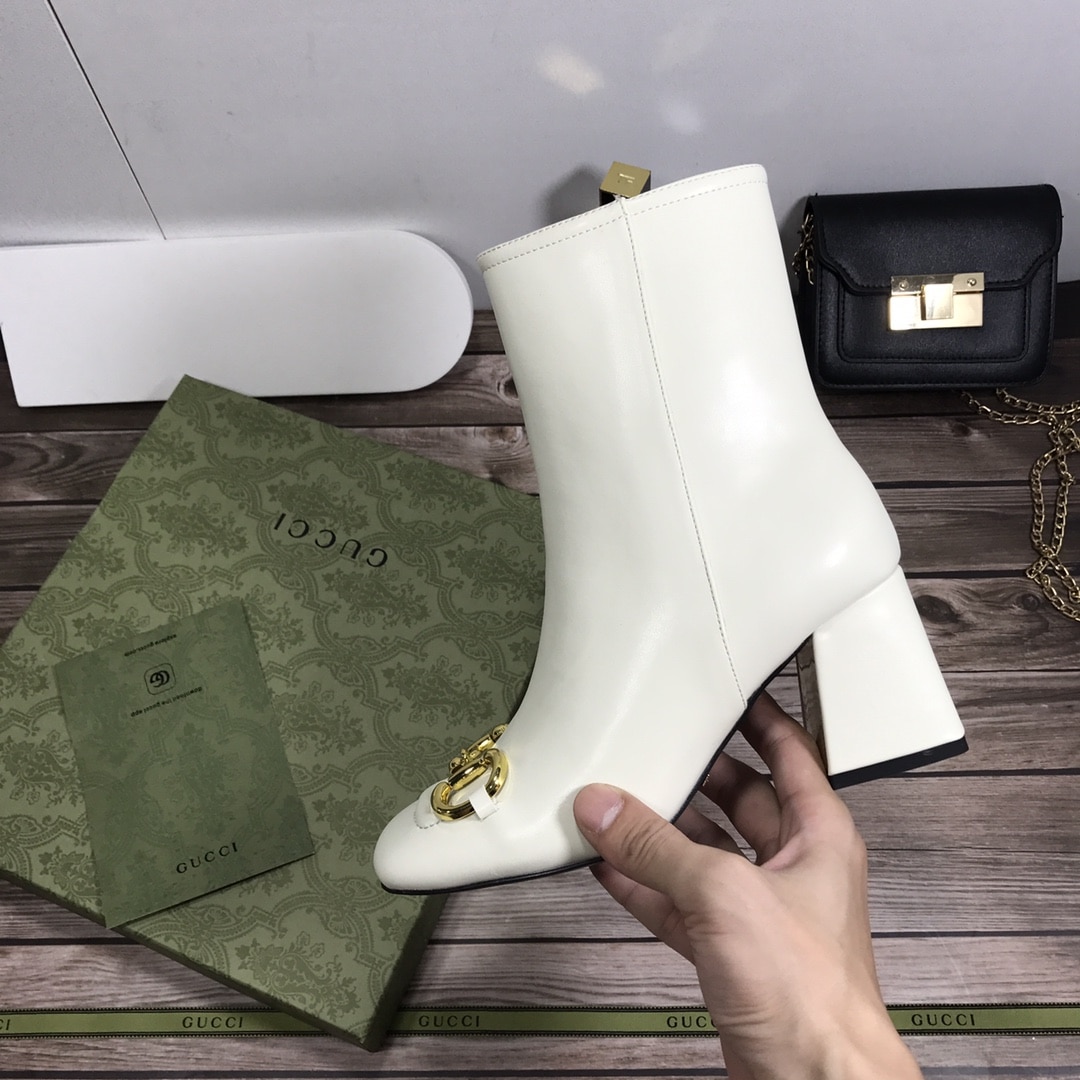 Gucci Women’S Horsebit Mid Heel Ankle Boots White 643888 Bko00 9022