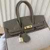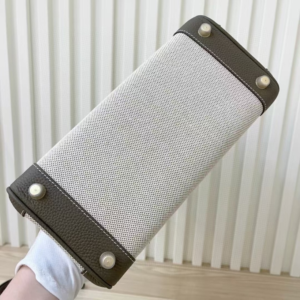 Hermes Birkin 25 Two Tone Toile Canvas Gold Hardware Grey 25Cm
