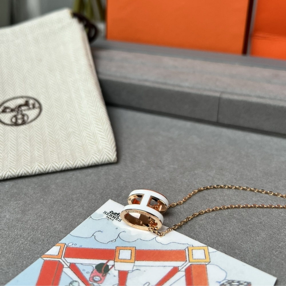 Hermes Mini Pop H Pendant Necklace White And Gold