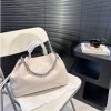 The Louis Vuitton Bella Tote in beige crafted from exceptionally soft, perforated Mahina leather. It features a gentle, draped silhouette accented by a distinctive braided leather-and-chain handle and an embossed LV Circle signature on the front. This functional tote offers a spacious interior with organized compartments, complemented by a detachable, adjustable leather strap for versatile shoulder or crossbody wear.
