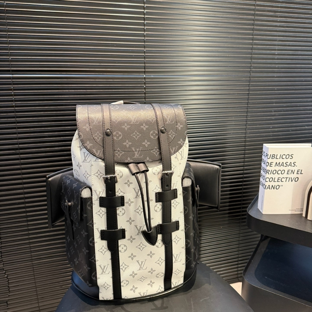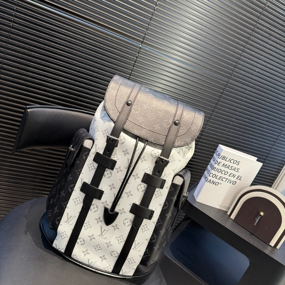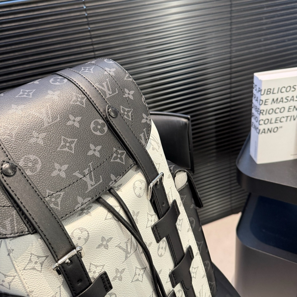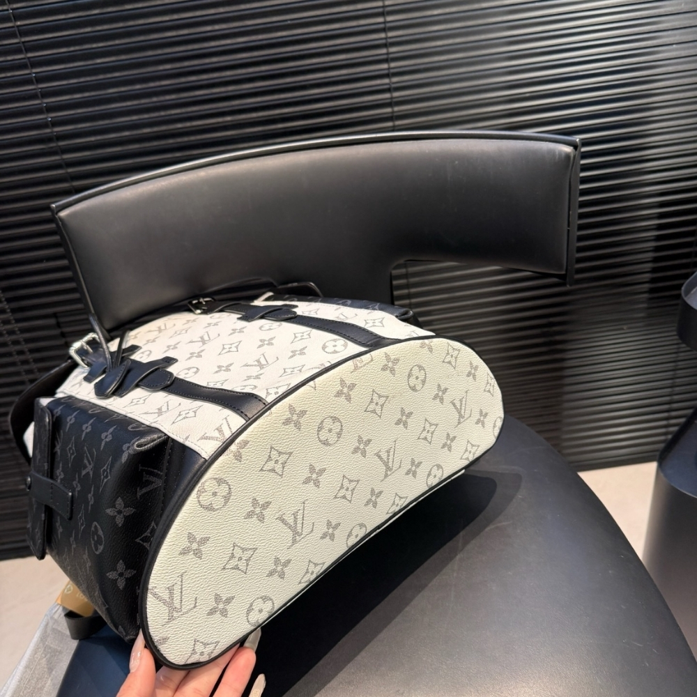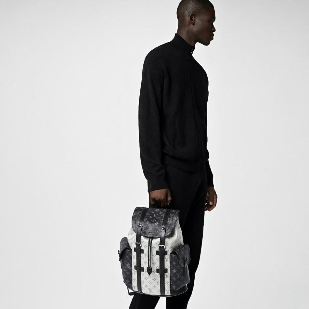 The Christopher PM backpack takes on a striking aspect in Monogram Eclipse Reverse canvas with black and white-leather trim. Two side pockets enable quick access to essentials while the leather flap with press-stud closure keep belongings safe. The Christopher PM is inspired by the design of the rugged hiking rucksack, rendered here in smaller dimensions.