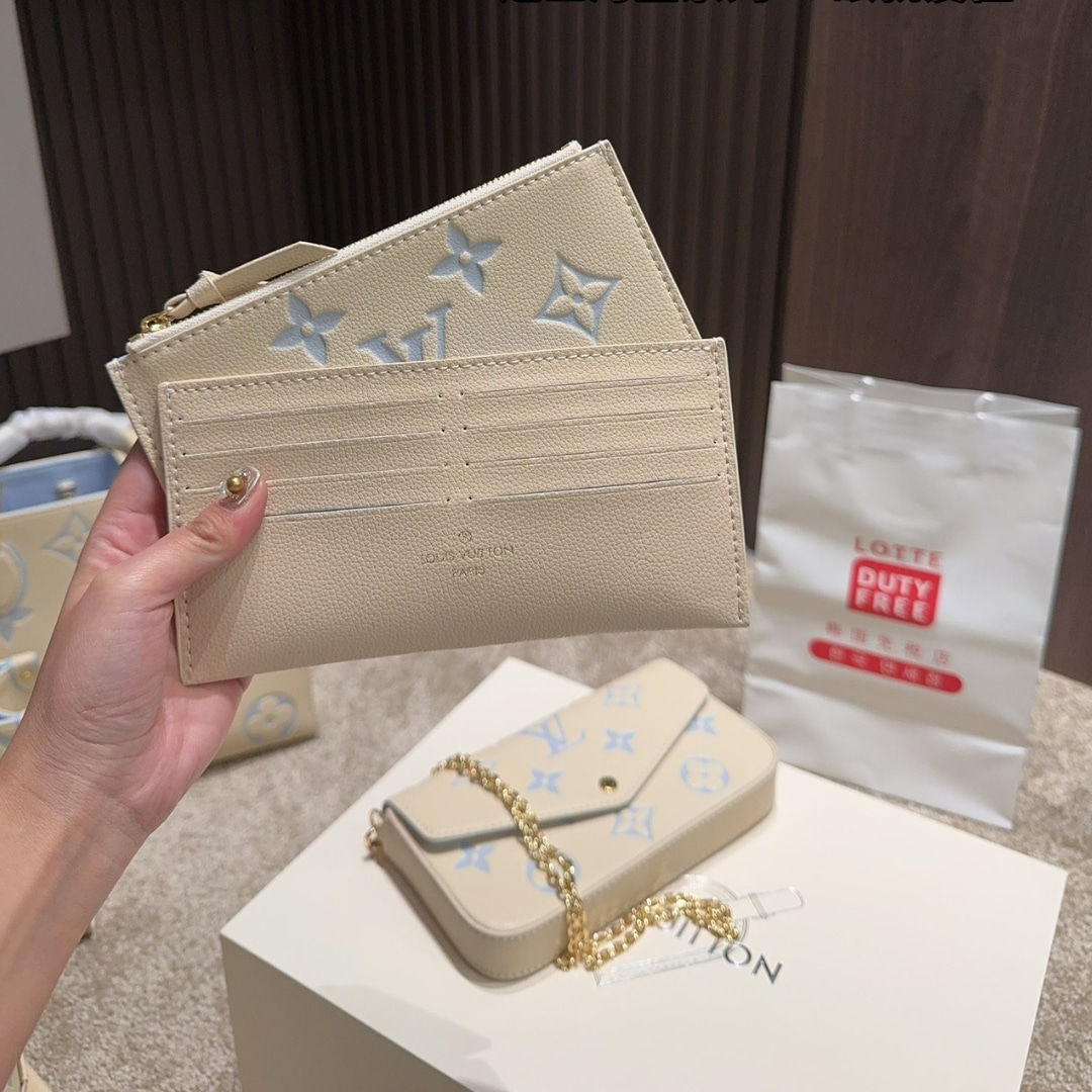 - Supple, grainy cowhide and embossed with Monogram Empreinte pattern