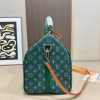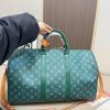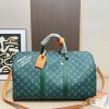 The House’s iconic Keepall Bandoulière 50 bag is made from colorful Monogram Heritage canvas with matching leather trim and leather for the shoulder strap and removable name tag. It features the historic Marque L. Vuitton Déposée signature, a nod to the House’s long-standing legacy.