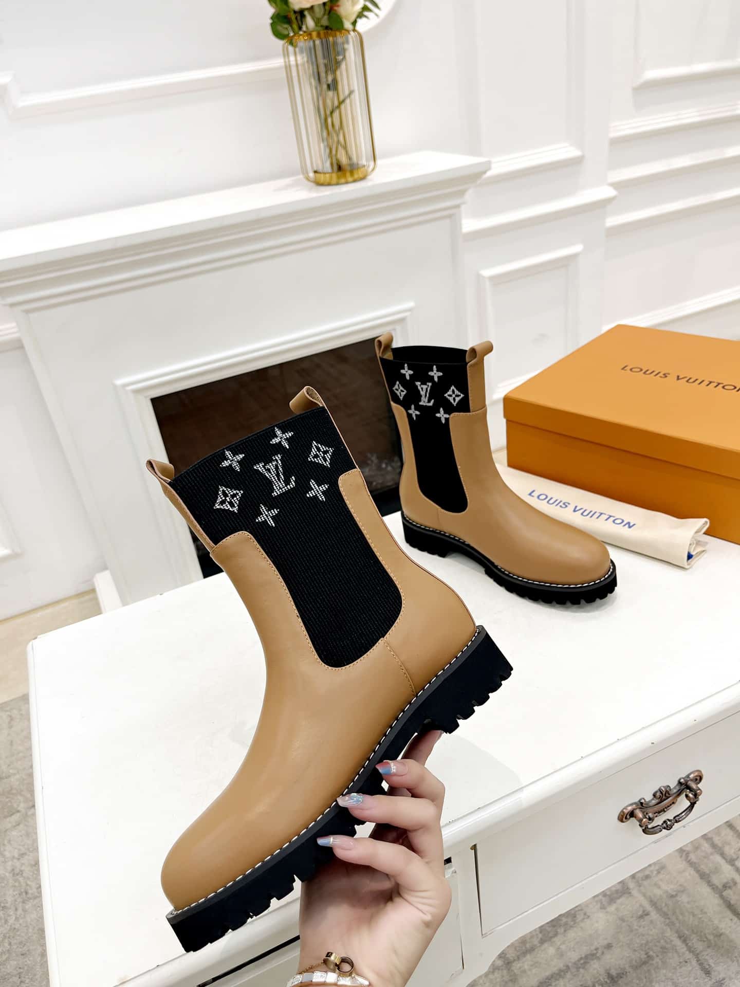 - Louis Vuitton-embossed patch