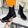 Crafted from velvety suede leather, the LV Beaubourg ankle boot nods to a Chelsea boot with its elastic side panels, while the leather belt detail references the ready-to-wear collection. Signed with a Louis Vuitton-embossed leather label, this easy-to-wear style comes on a sturdy heel and chunky yet lightweight micro outsole.
