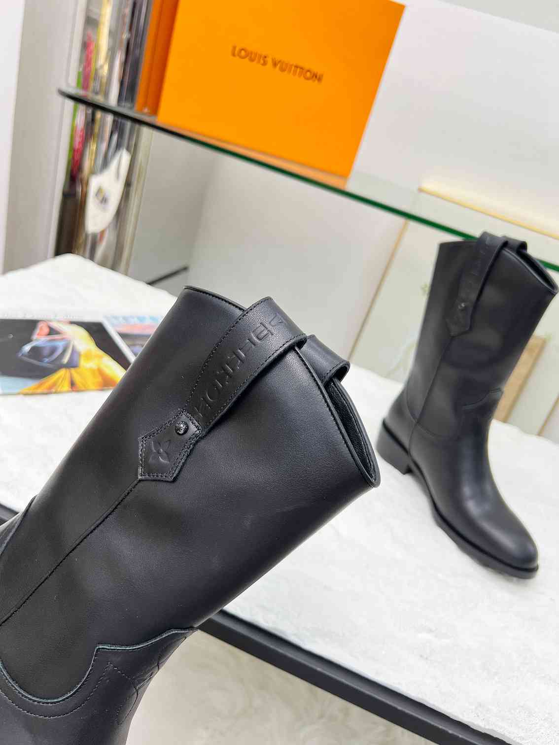 - Vuitton lettering on shoe straps