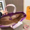 The MM Shopper Tote is crafted from leather and features a Louis Vuitton logo inspired by Maison shopping bags. The spacious interior is lined with cotton and incorporates multiple convenient compartments, including a zippered pocket for valuables. Two top handles and a detachable shoulder strap complete this practical and elegant design.