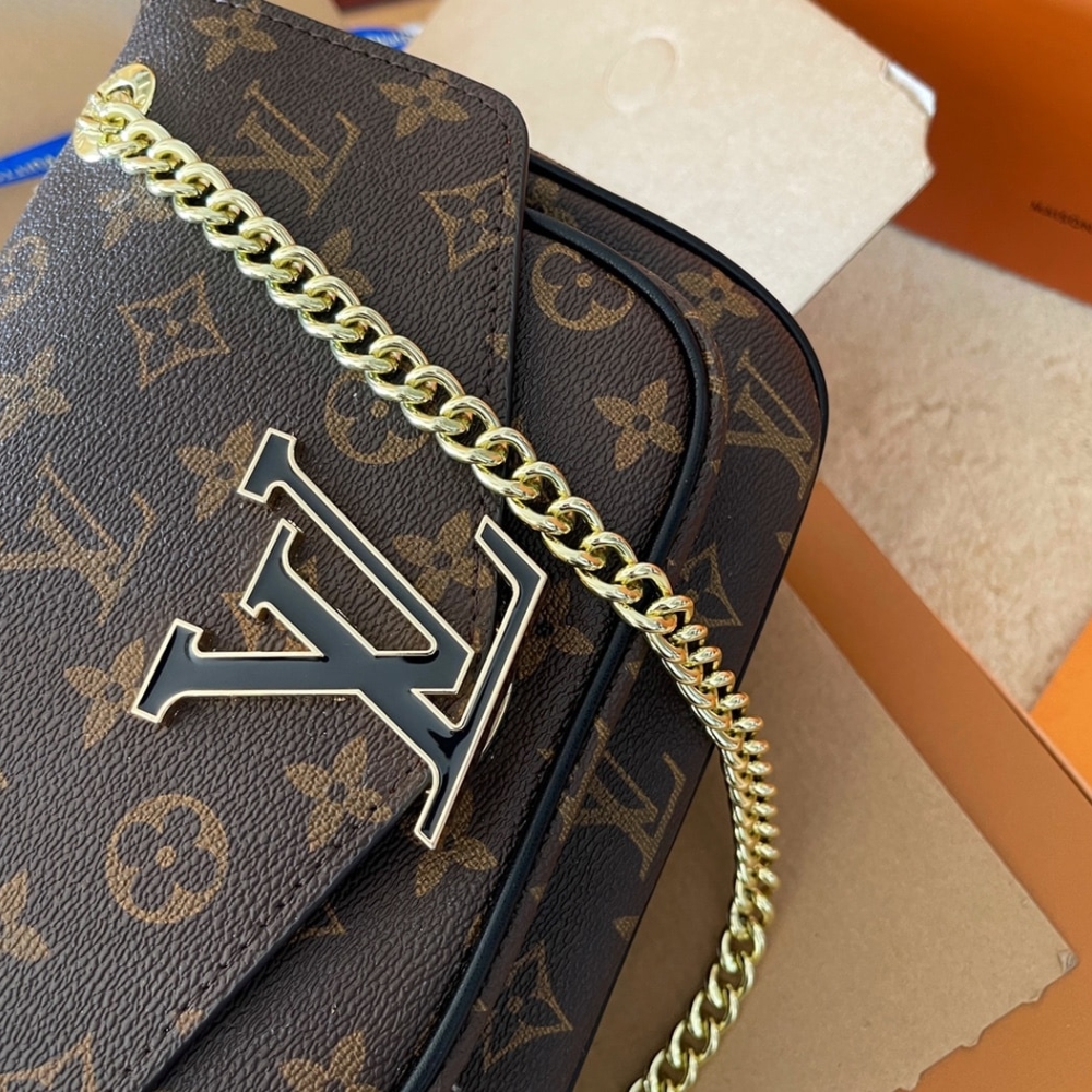 The compact Passy handbag in Monogram canvas with a sliding chain is the quintessence of casual chic. A functional day-to-evening bag, it has front and back outside pockets for quick access to essentials as well as two inside pockets. It closes with a magnetic LV lock in black resin with a gold-color outline.
