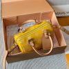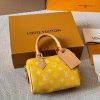 The Louis Vuitton Nano Speedy in yellow is a miniature version of the House’s iconic travel bag. This compact design is crafted from Monogram coated canvas and features leather trims, and a secure zipper closure. It provides a surprising amount of storage for essentials such as a smartphone, keys, and a card holder. The bag is highly versatile, including a removable and adjustable shoulder strap that allows for hand, shoulder, or crossbody carry.