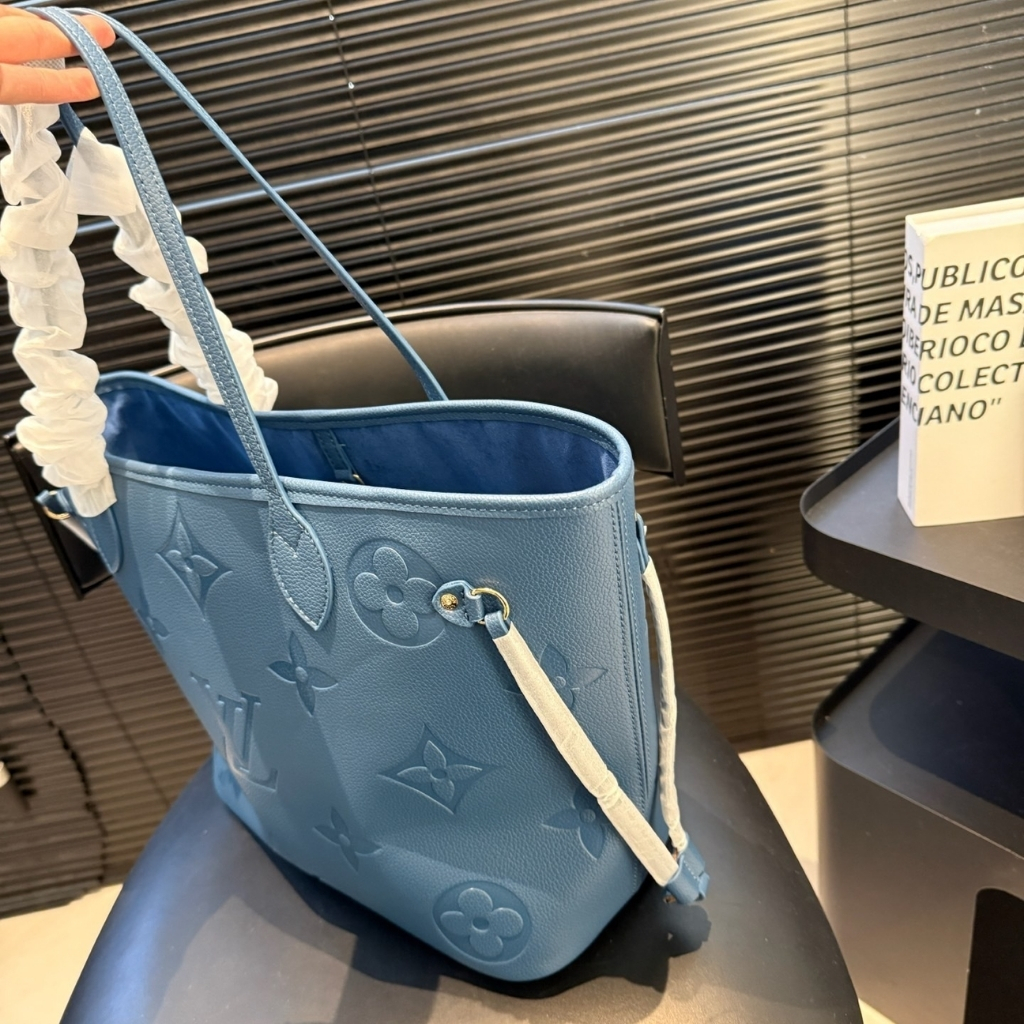 Replica 1:1 – Louis Vuitton Neverfull MM Tote Bag Monogram Empreinte Bleu Jean 31cm M27358