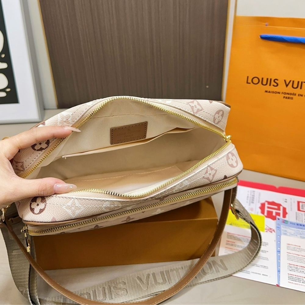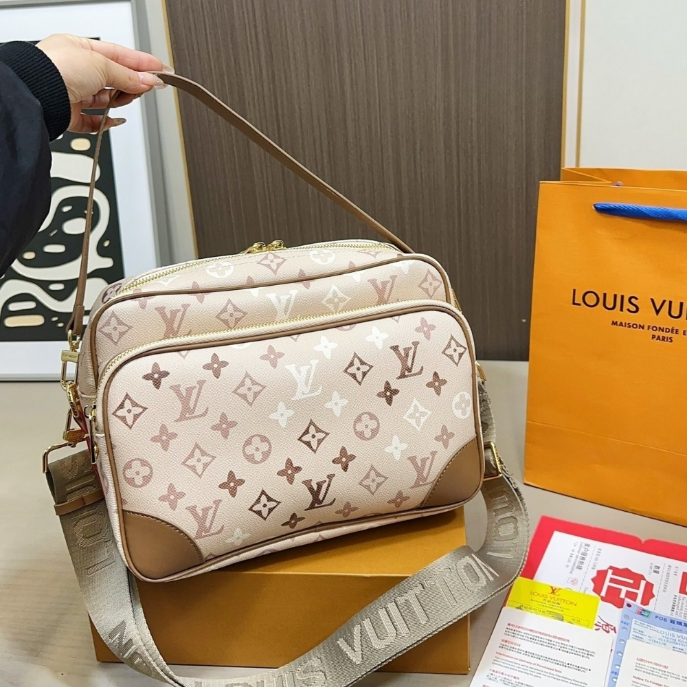 The Louis Vuitton Nil in Monogram Beige is a messenger-style bag that combines the Maison’s functional heritage with a fresh, neutral aesthetic. Crafted from durable Monogram coated canvas in a subtle beige-and-tan colorway, it features smooth leather trim and two separate zippered compartments for optimal organization. This versatile piece includes an adjustable textile shoulder strap, making it an ideal choice for hands-free daily use or as a sophisticated travel companion.
