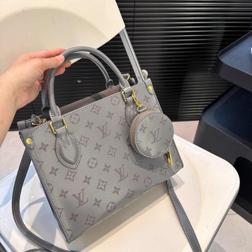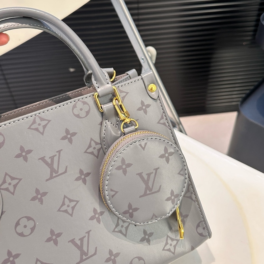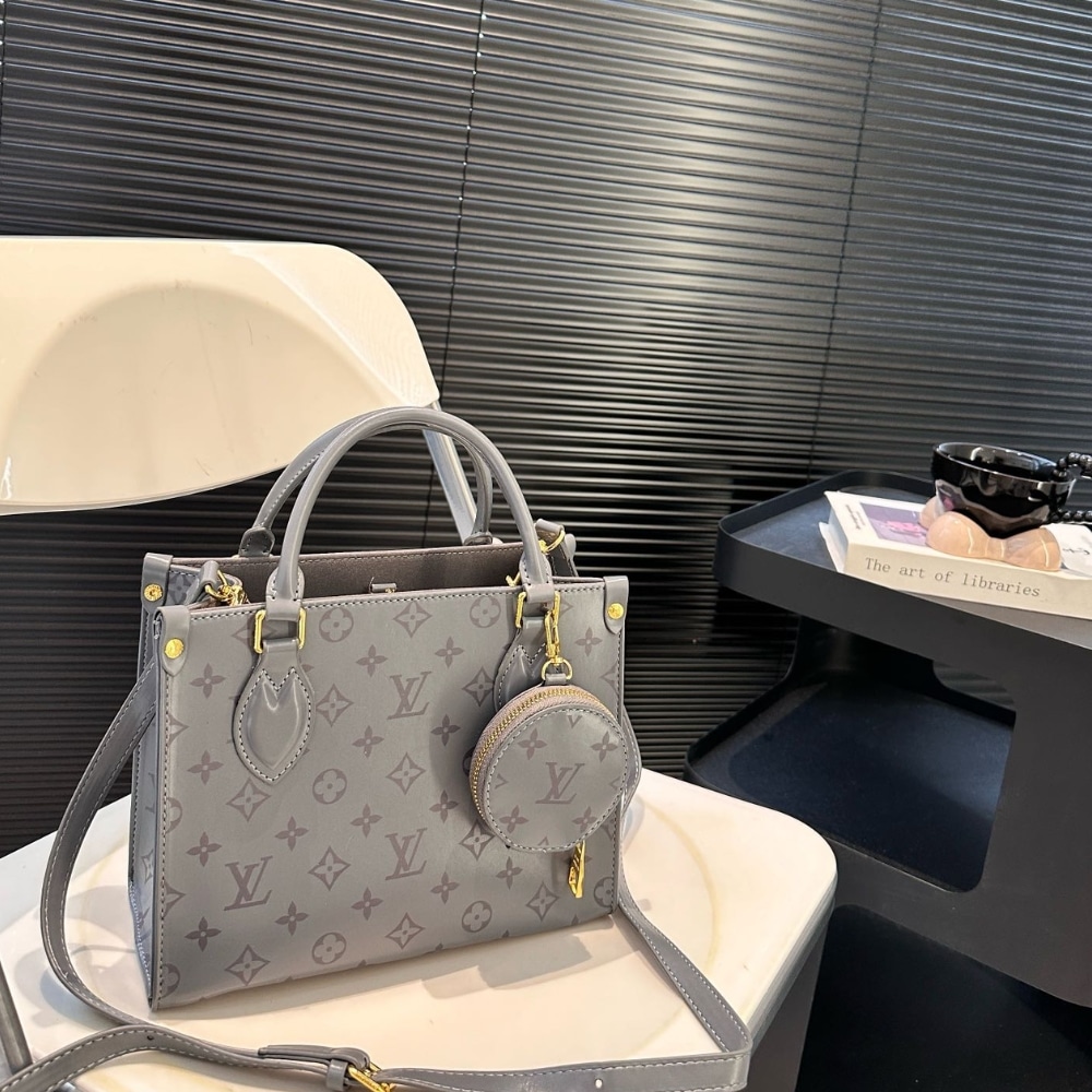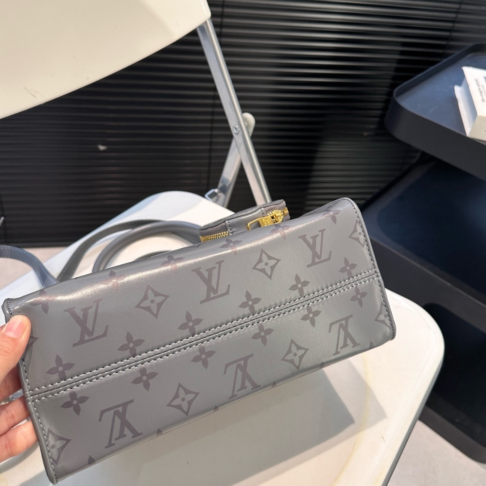 Part of the Monogram Ink lineup, the OnTheGo PM offers a matte, tone-on-tone finish in seasonal Trianon gray. It is crafted from smooth leather, elevated with four riveted corner tabs that nod to the House’s iconic vintage trunks. The smart interior is well-organized, and includes a large zipped pocket for bills and notes.