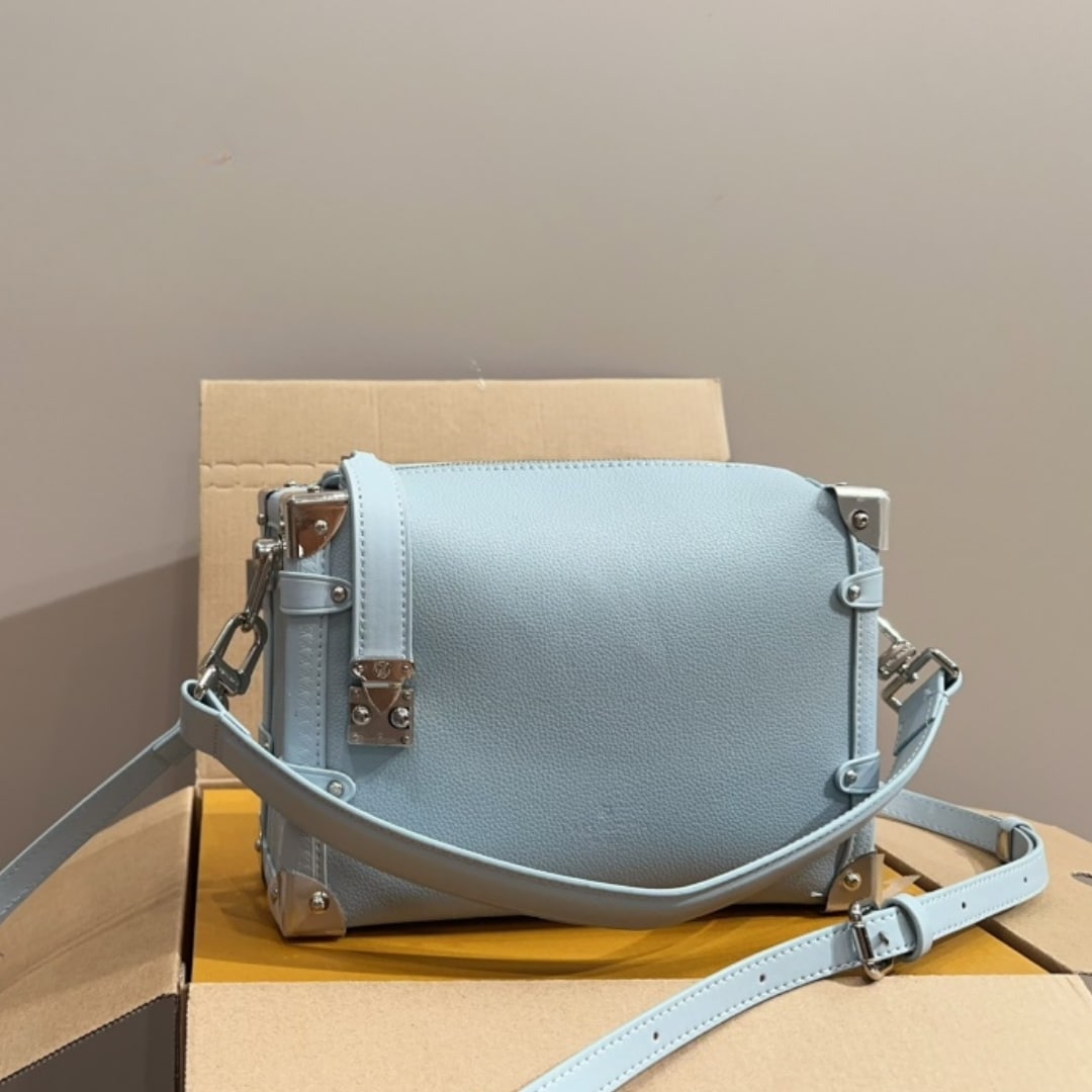 Louis Vuitton Side Trunk MM Grained Calf Leather Bleu Olympe 23Cm M25067
